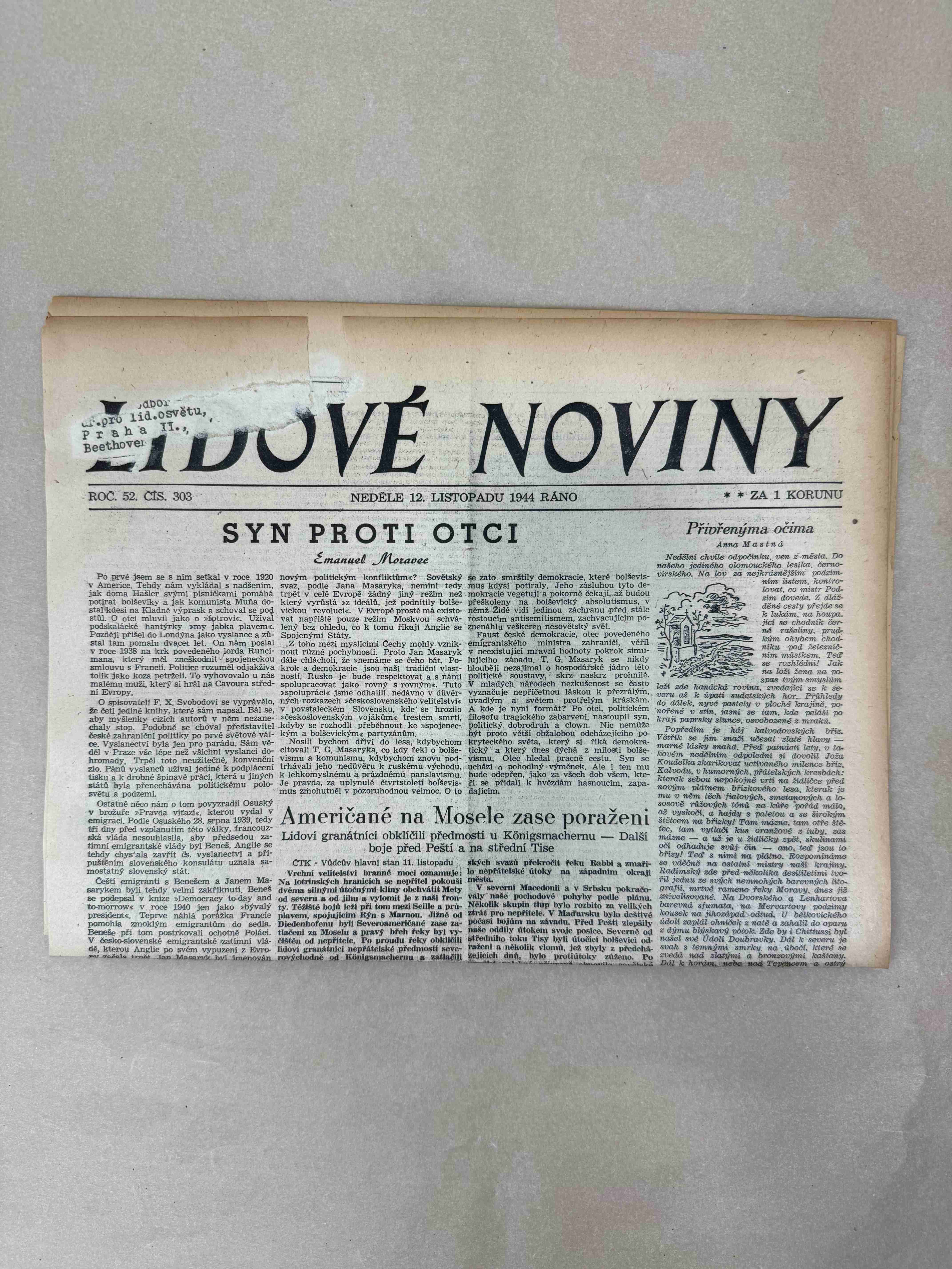 Originální dobový výtisk novin, nejedná se o reprodukci!