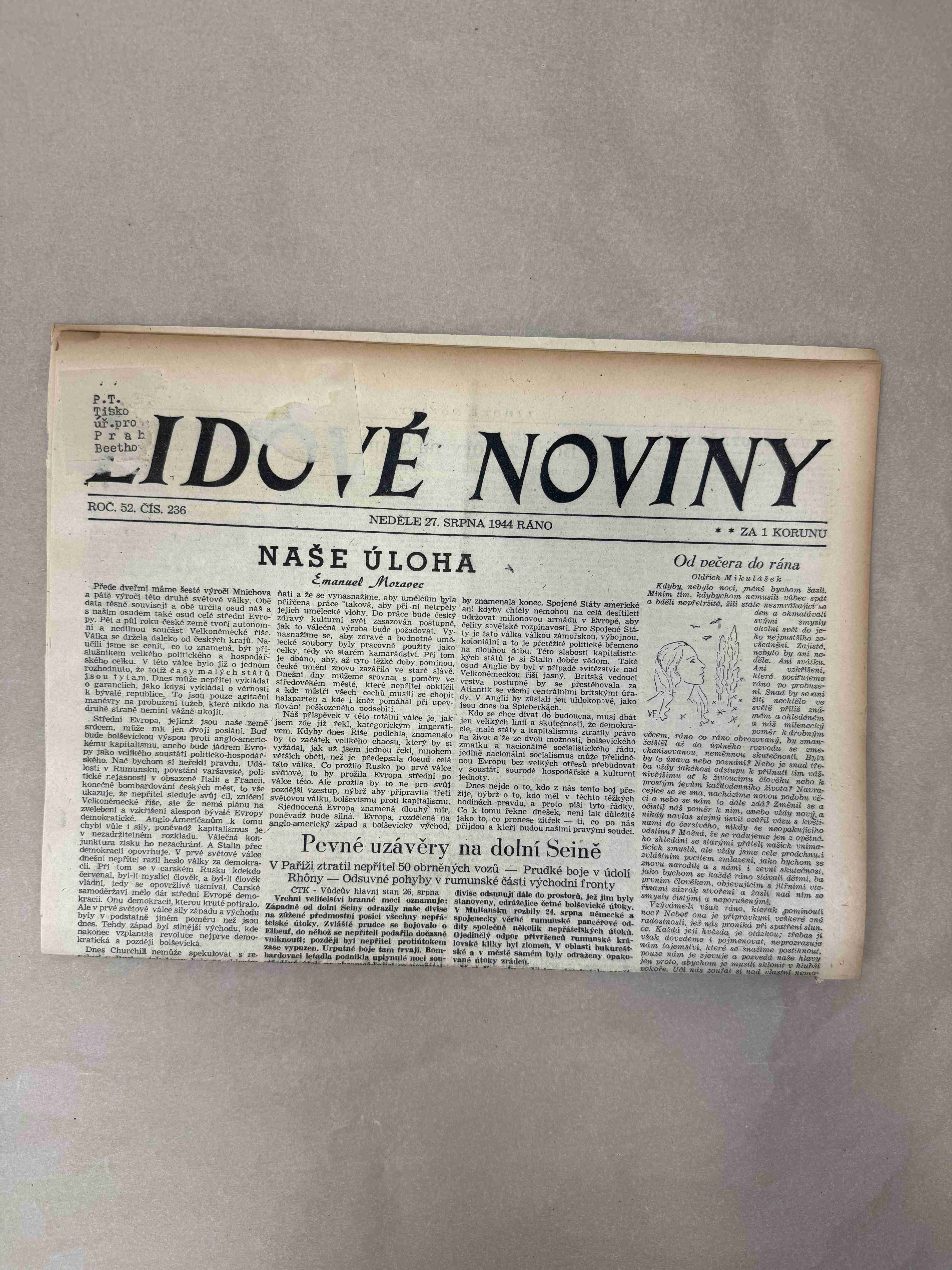 Originální dobový výtisk novin, nejedná se o reprodukci!