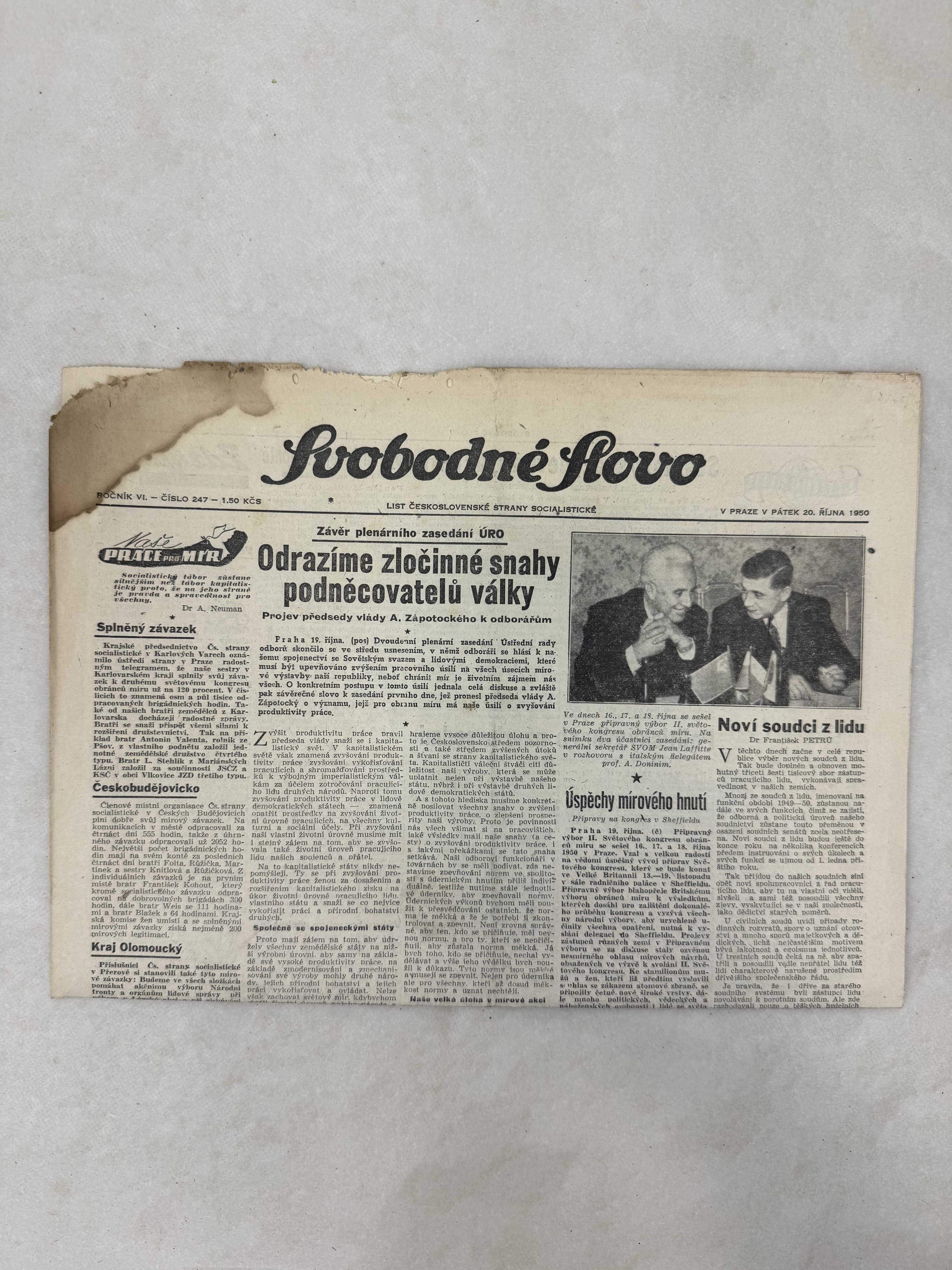 Svobodné slovo 20.10.1950