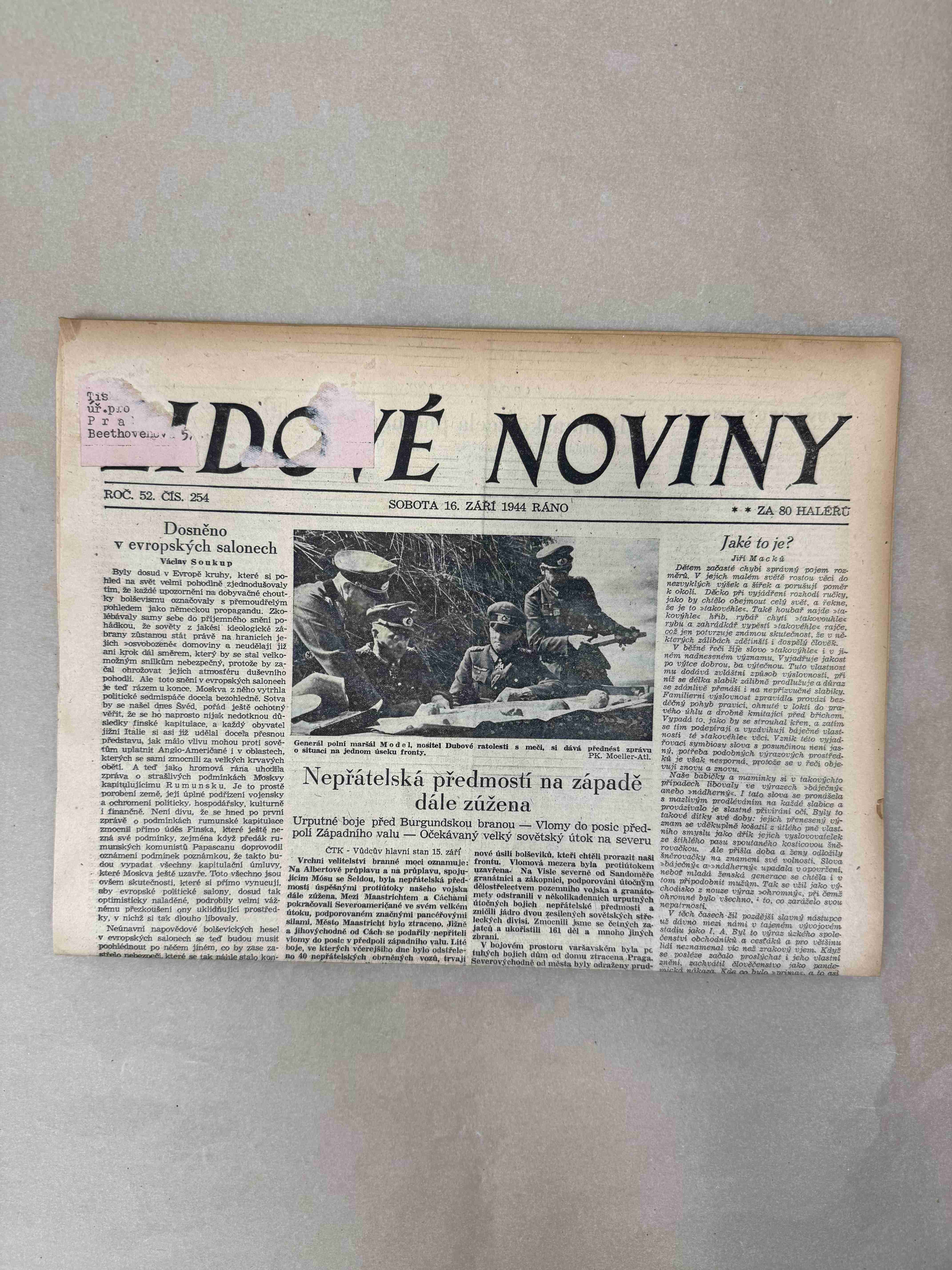 Originální dobový výtisk novin, nejedná se o reprodukci!
