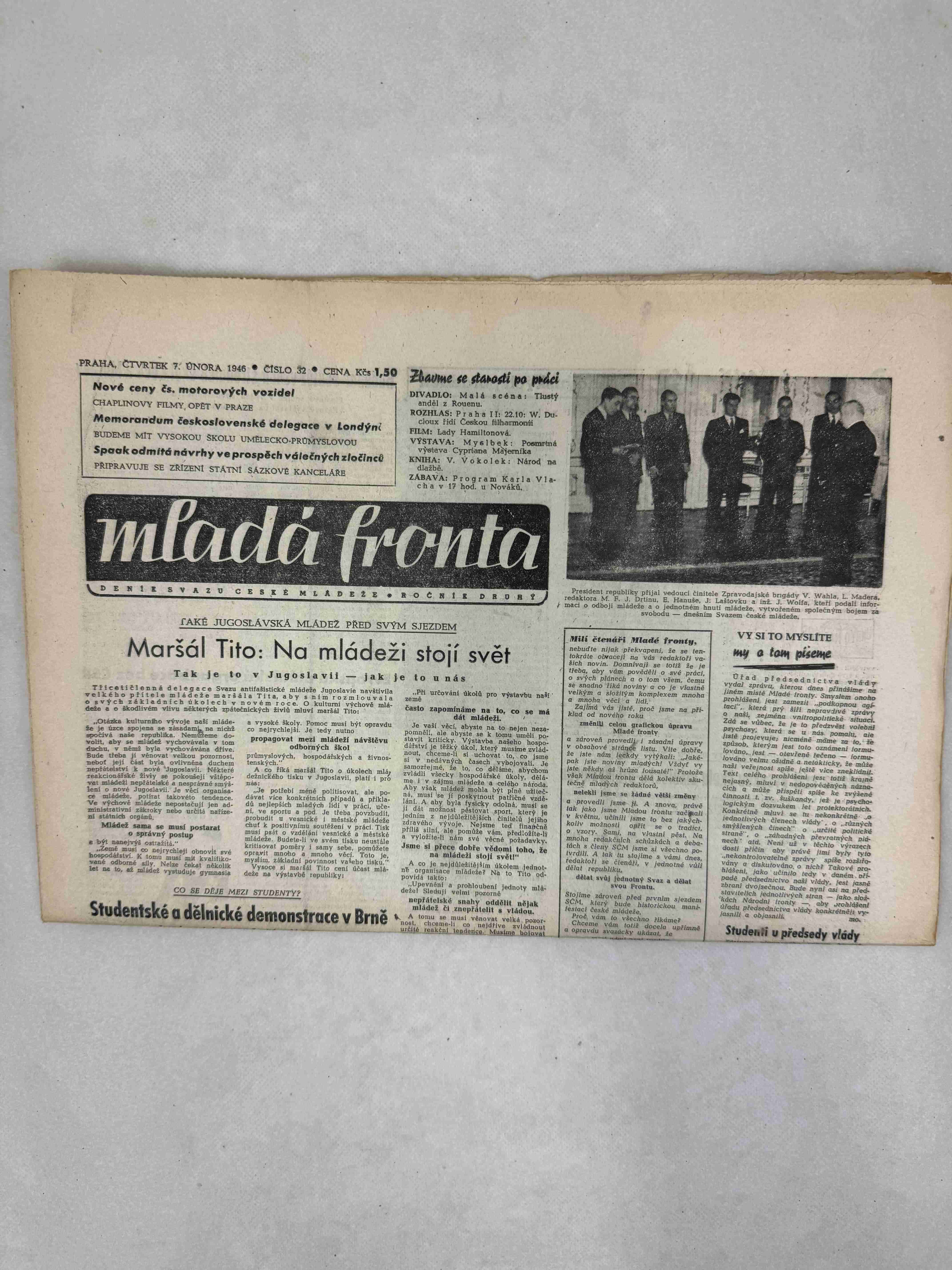 Originální dobový výtisk novin, nejedná se o reprodukci!
