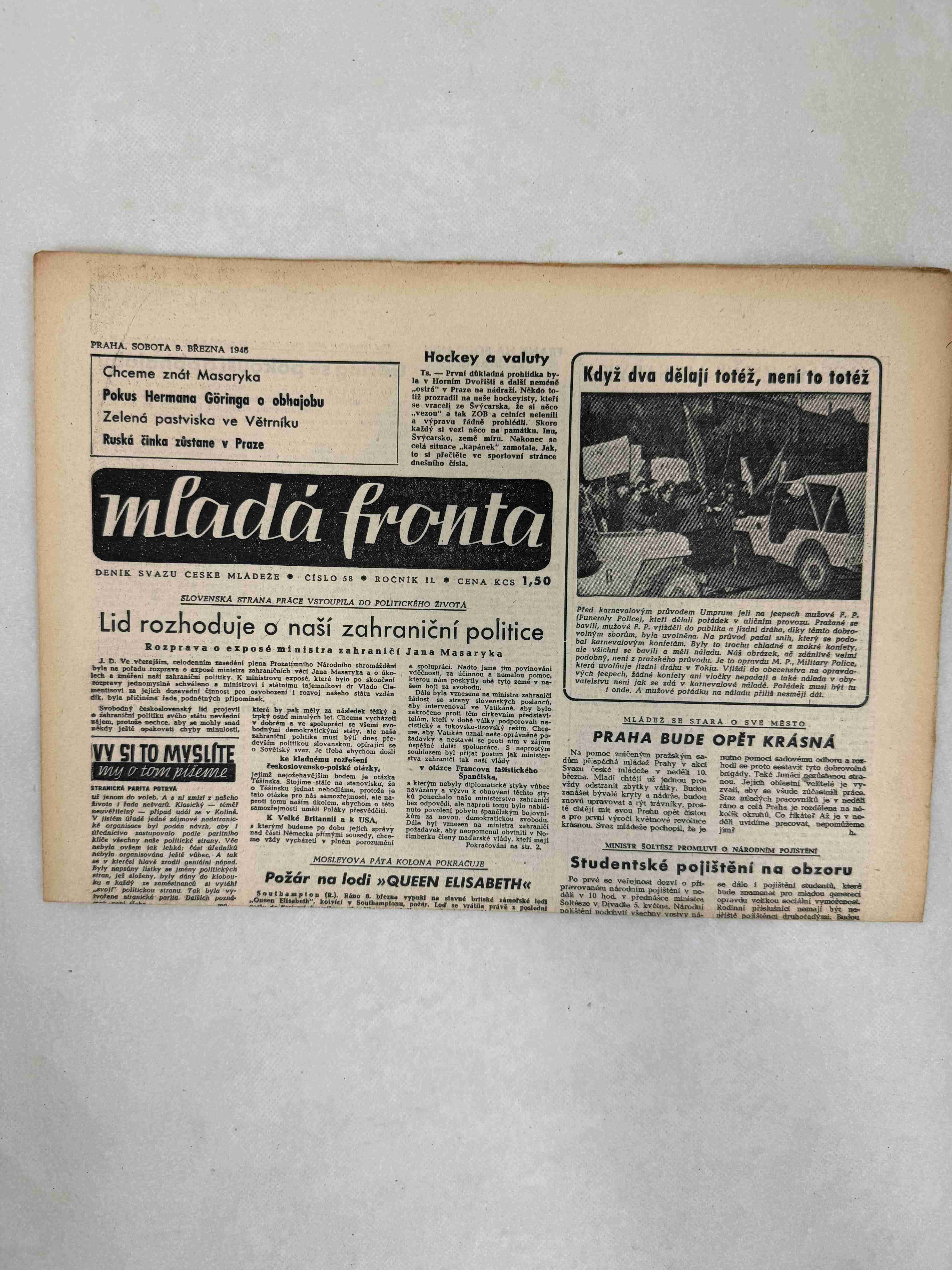 Originální dobový výtisk novin, nejedná se o reprodukci!