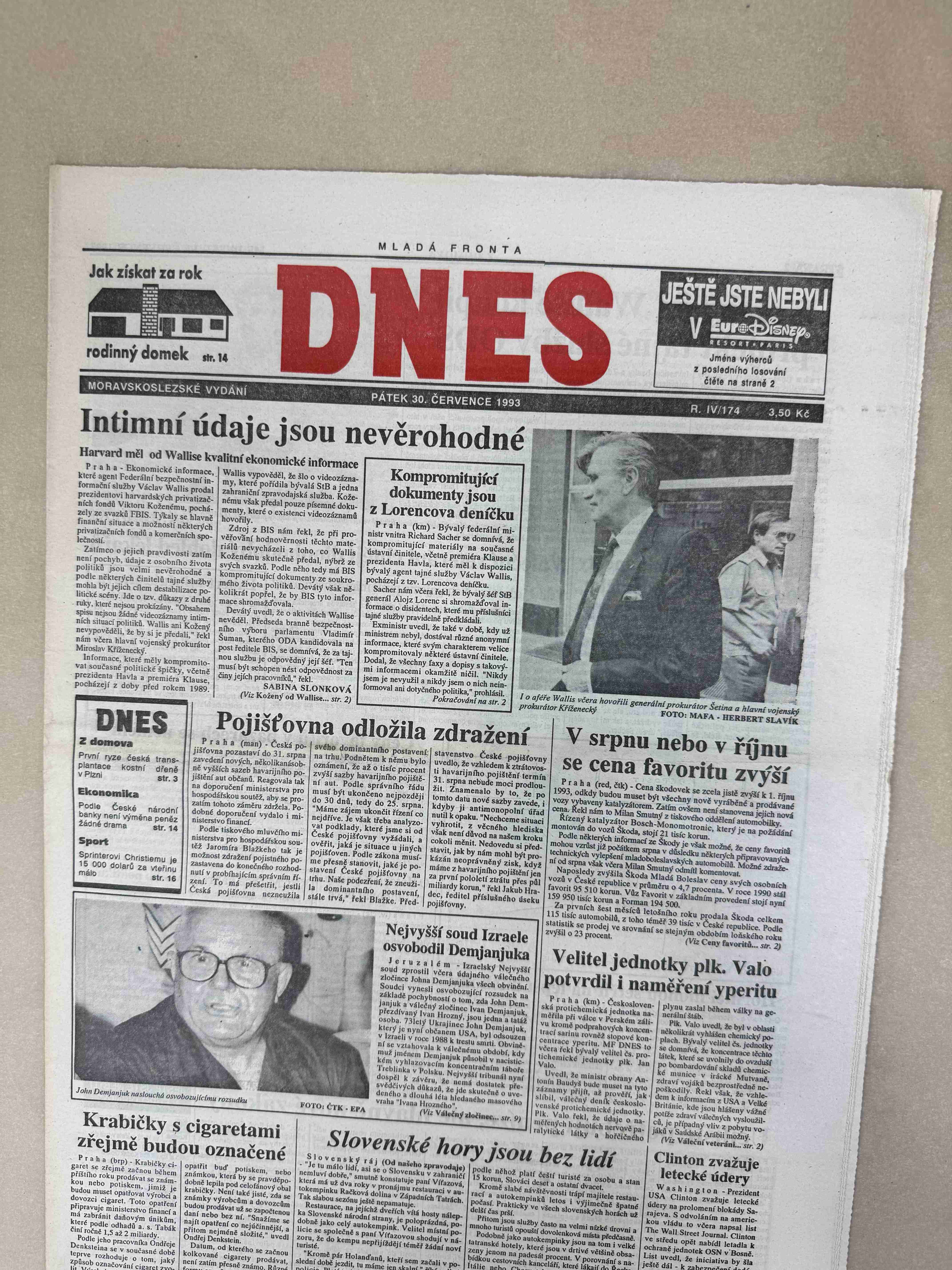 Originální dobový výtisk novin, nejedná se o reprodukci!