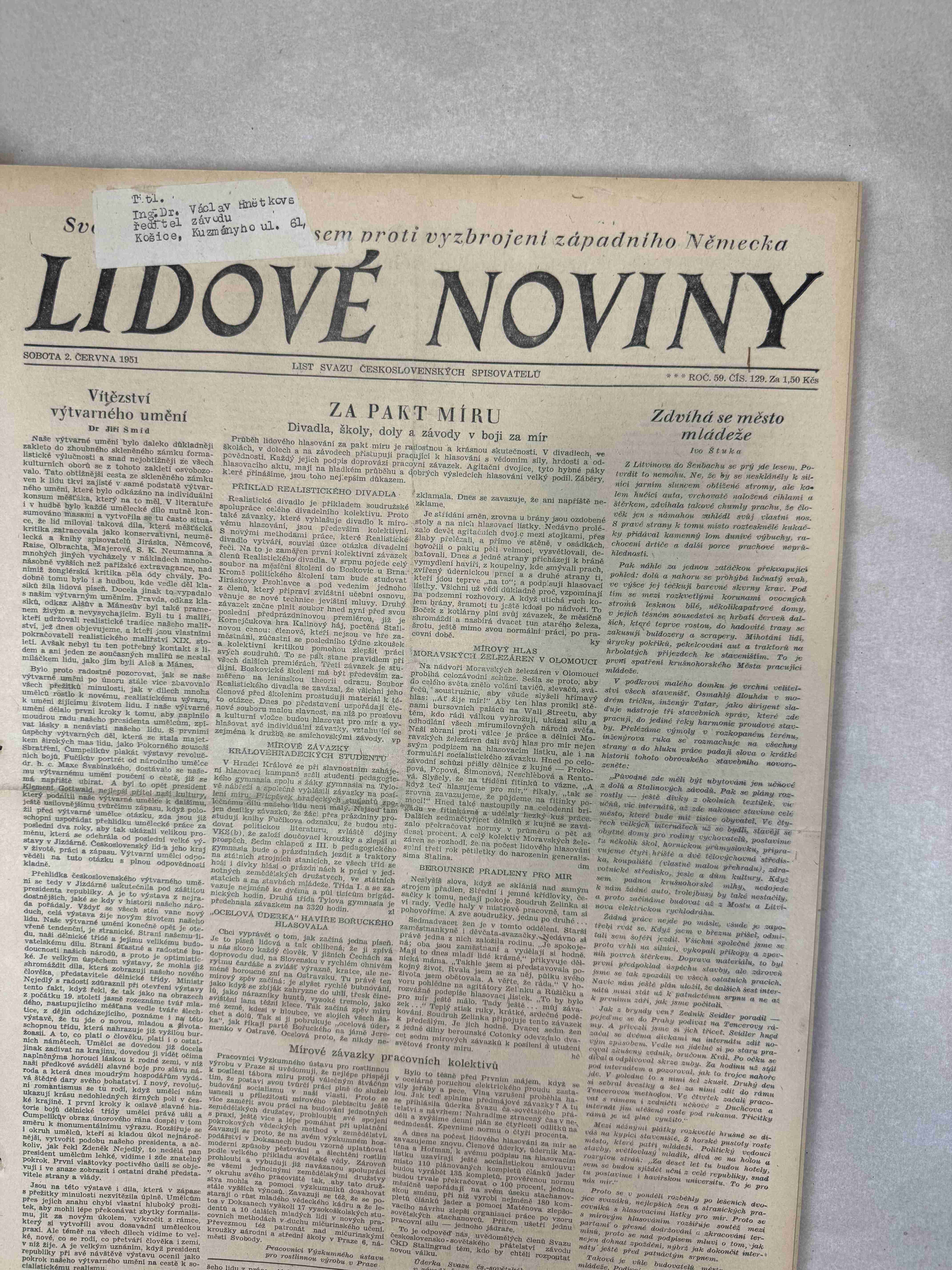 Nabízené noviny jsou určeny výhradně ke sběratelským účelům a neslouží k propagaci jakéhokoliv hnutí směřujícího k potlačení práv a svobod člověka (nacistického, komunistického apod.). Prodávající se distancuje od výše uvedených hnutí a jejich myšlenek.