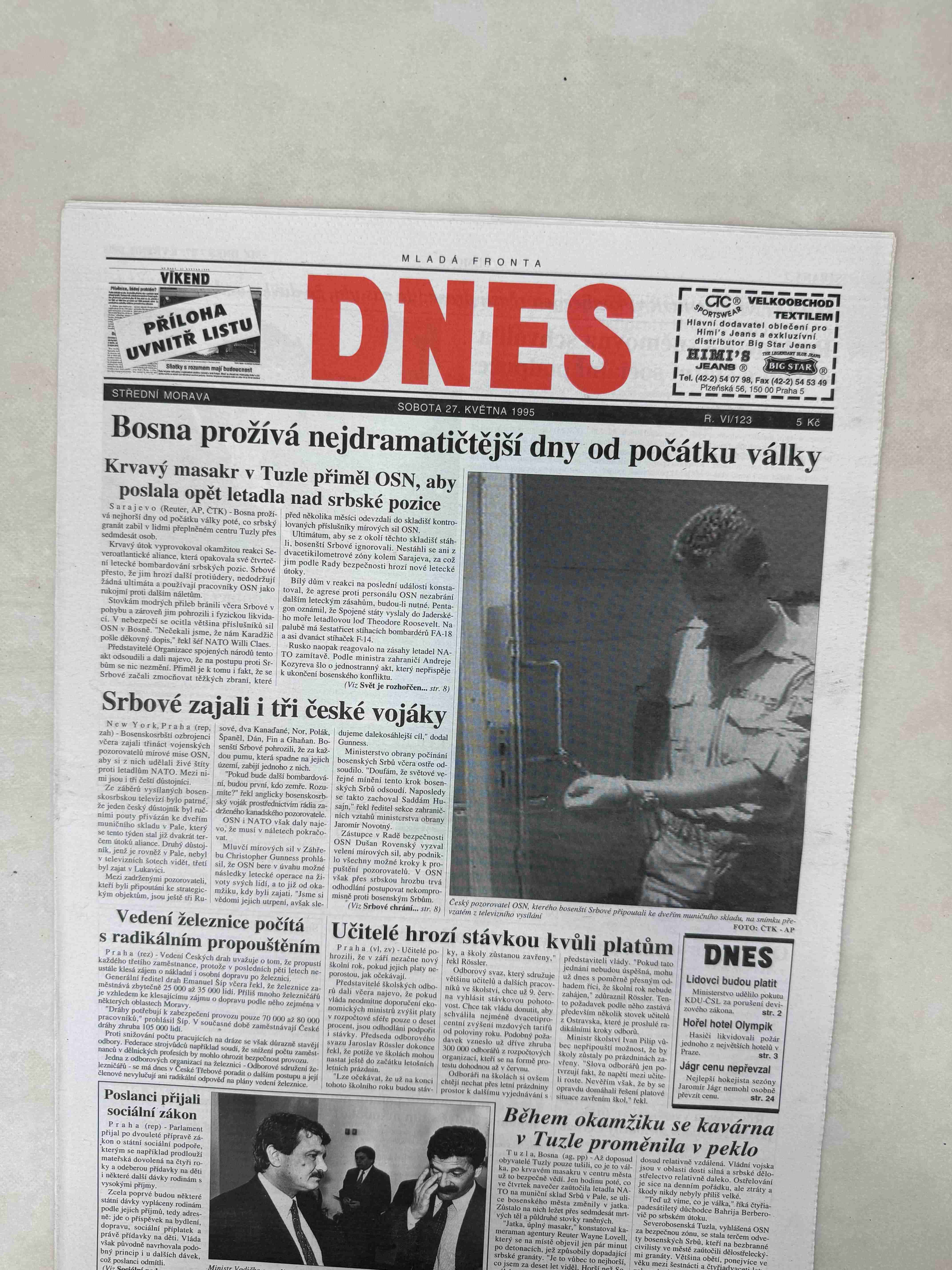 Nabízené noviny jsou 100% originální, jedná se o dobový výtisk.