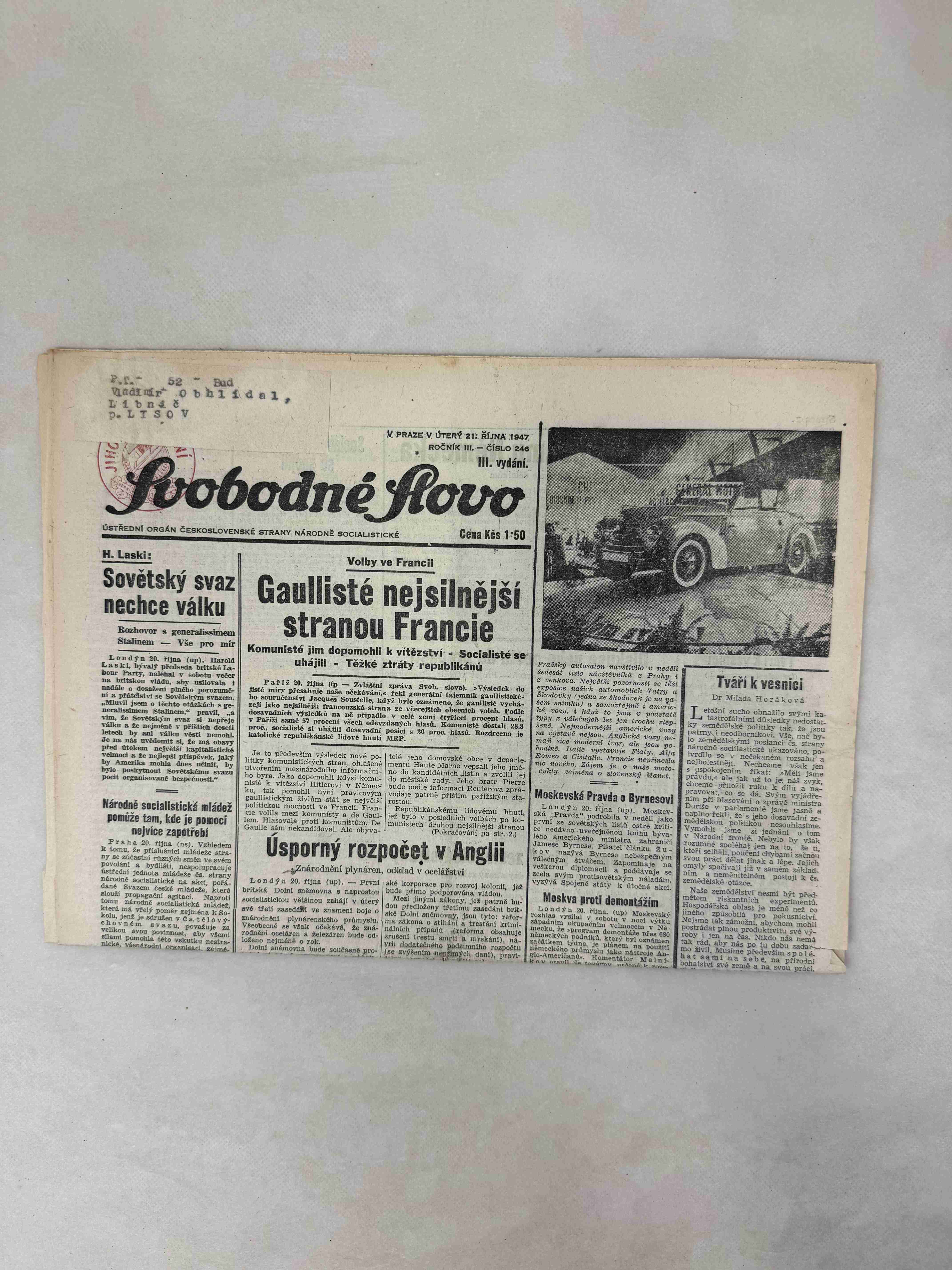 Originální dobový výtisk novin, nejedná se o reprodukci!
