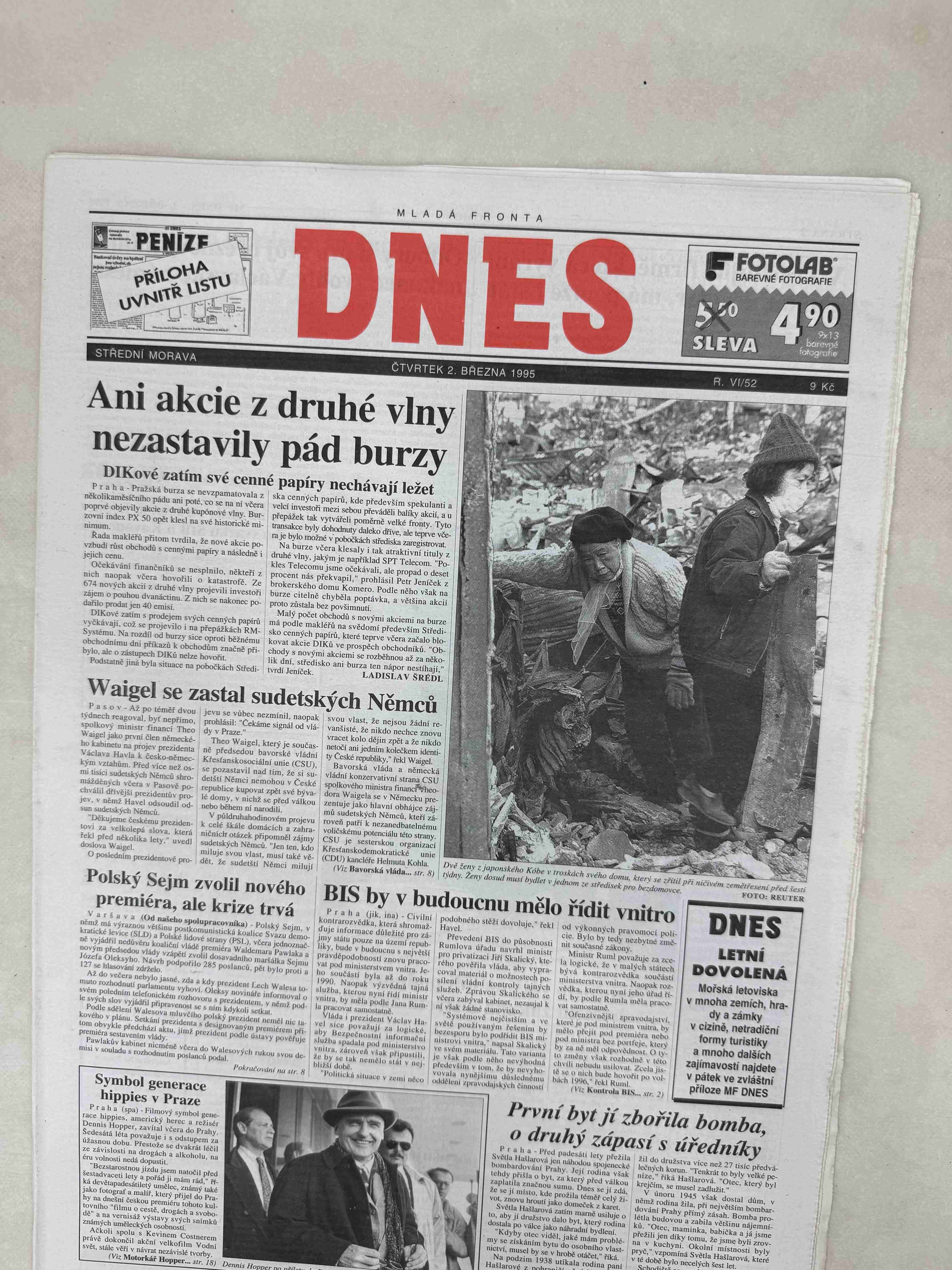 Nabízené noviny jsou 100% originální, jedná se o dobový výtisk.