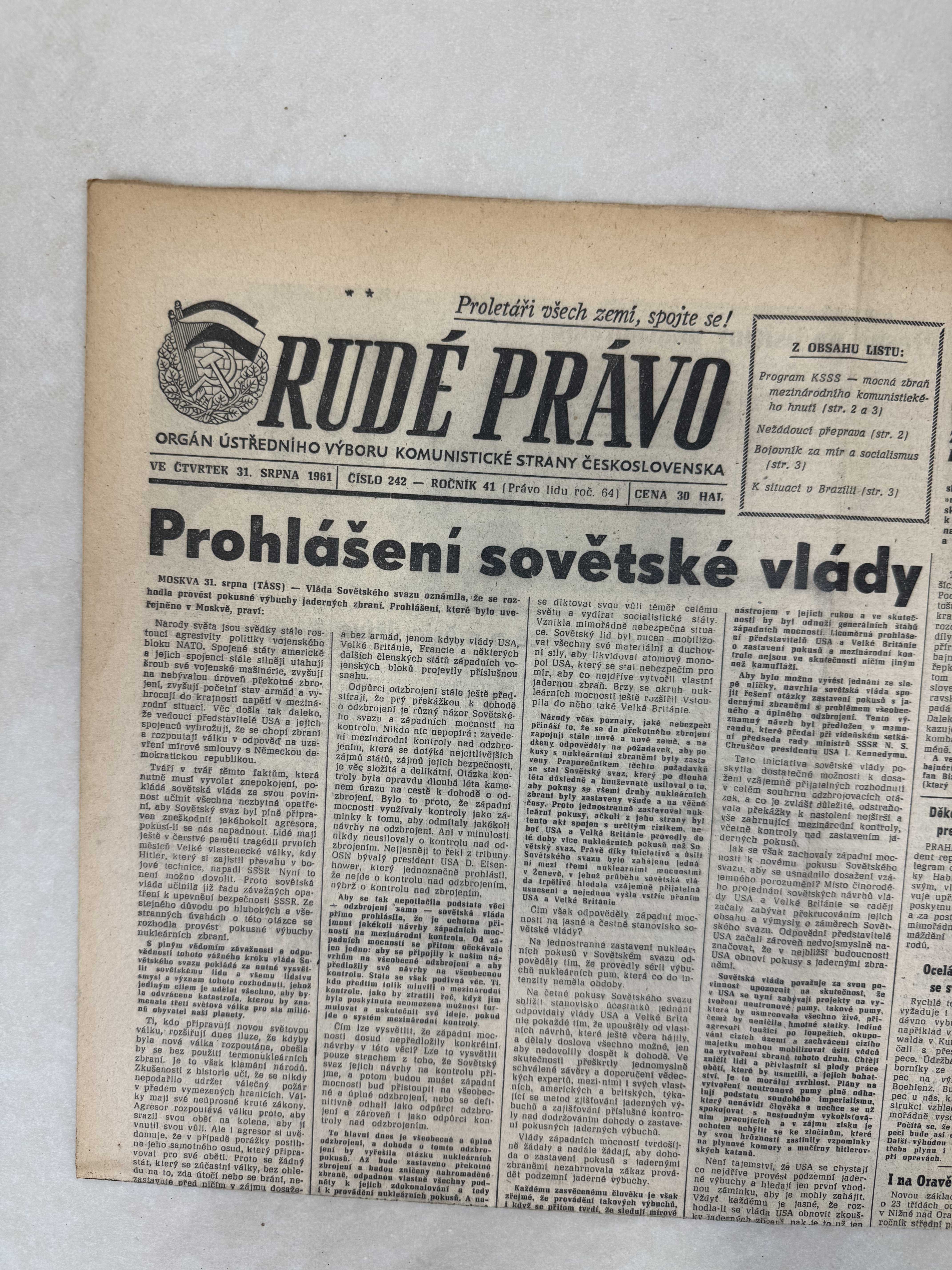 Rudé právo 31.8.1961