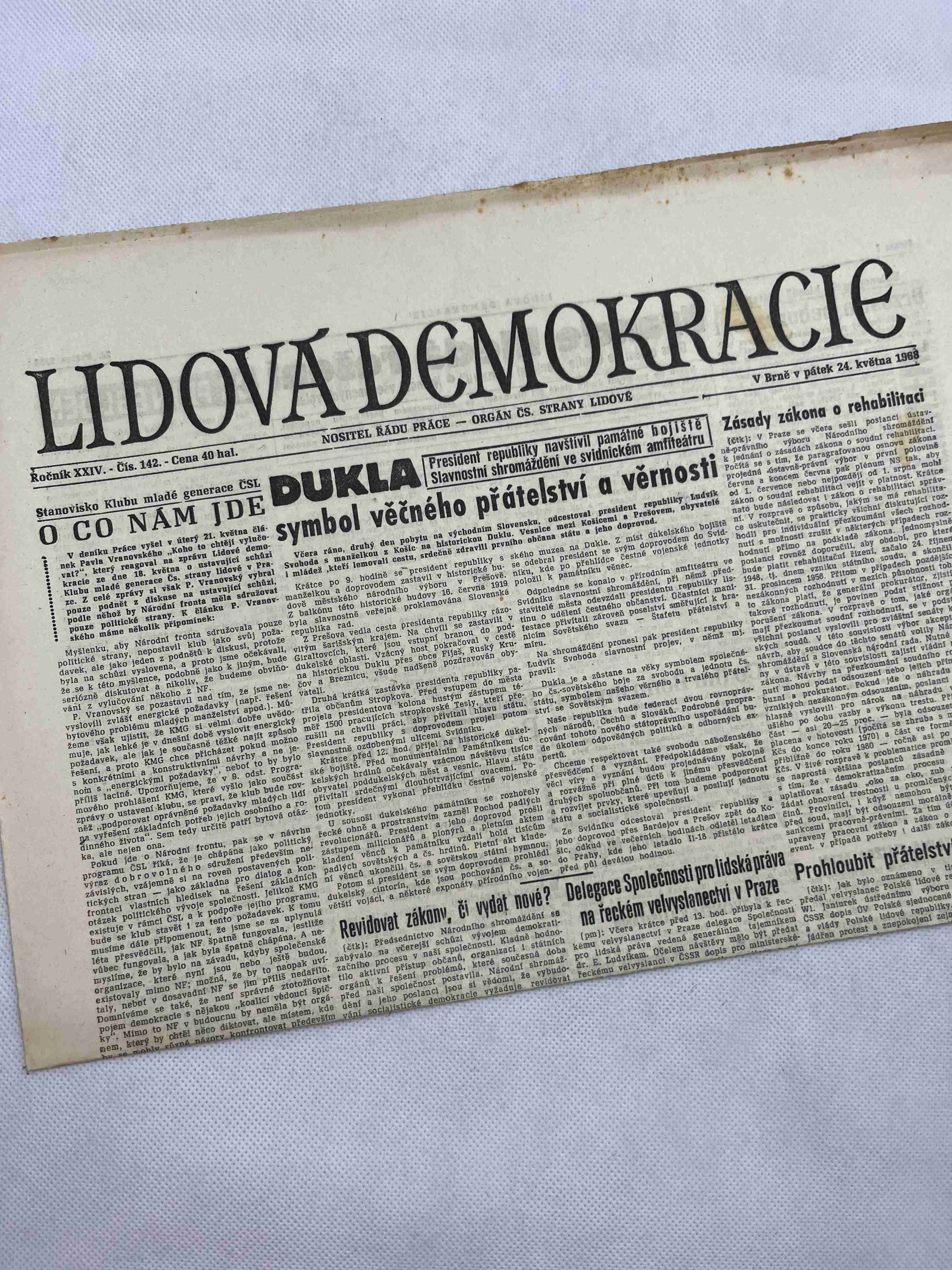 Nabízené noviny jsou 100% originální, jedná se o dobový výtisk.