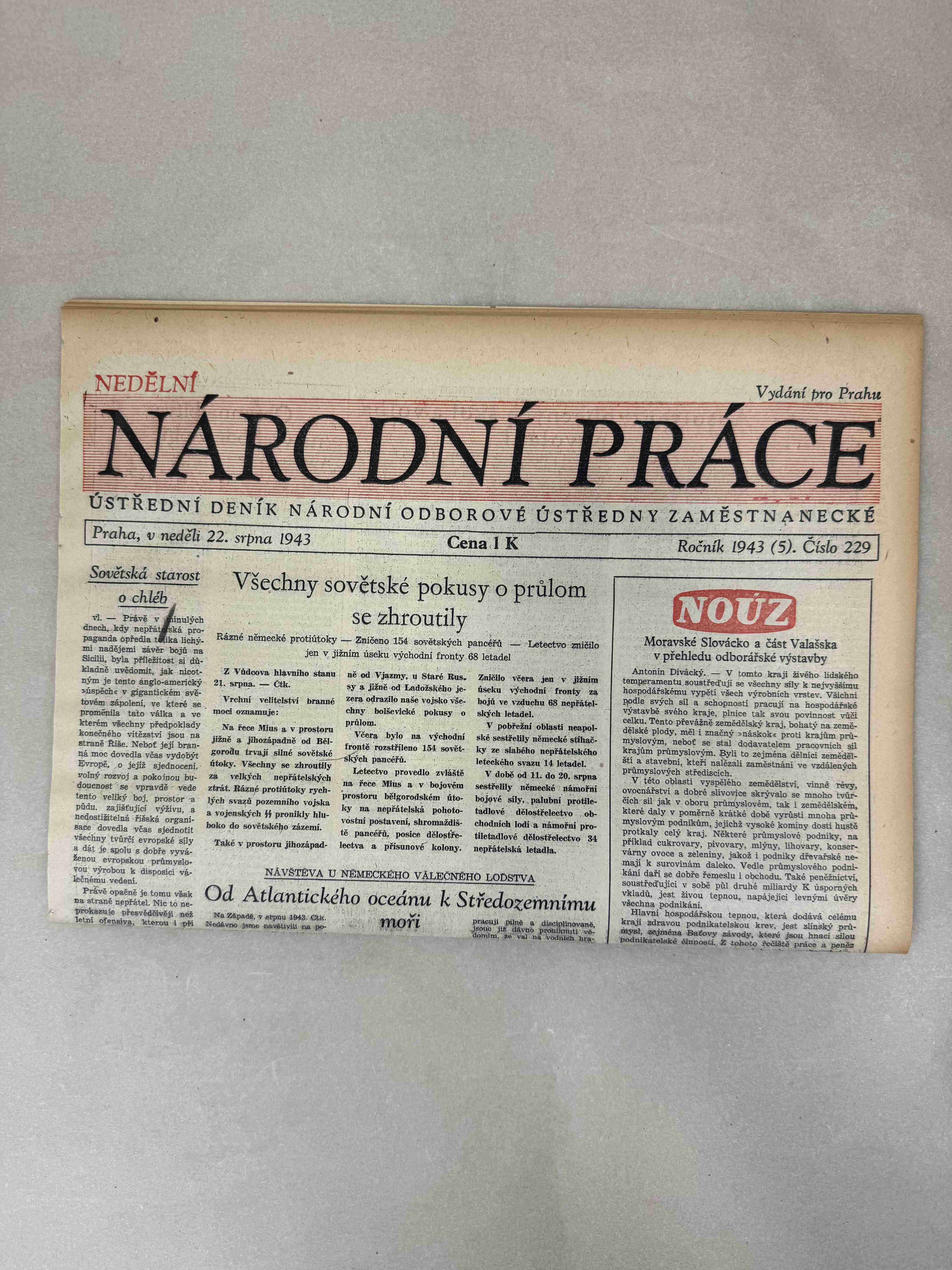 Originální dobový výtisk novin, nejedná se o reprodukci!