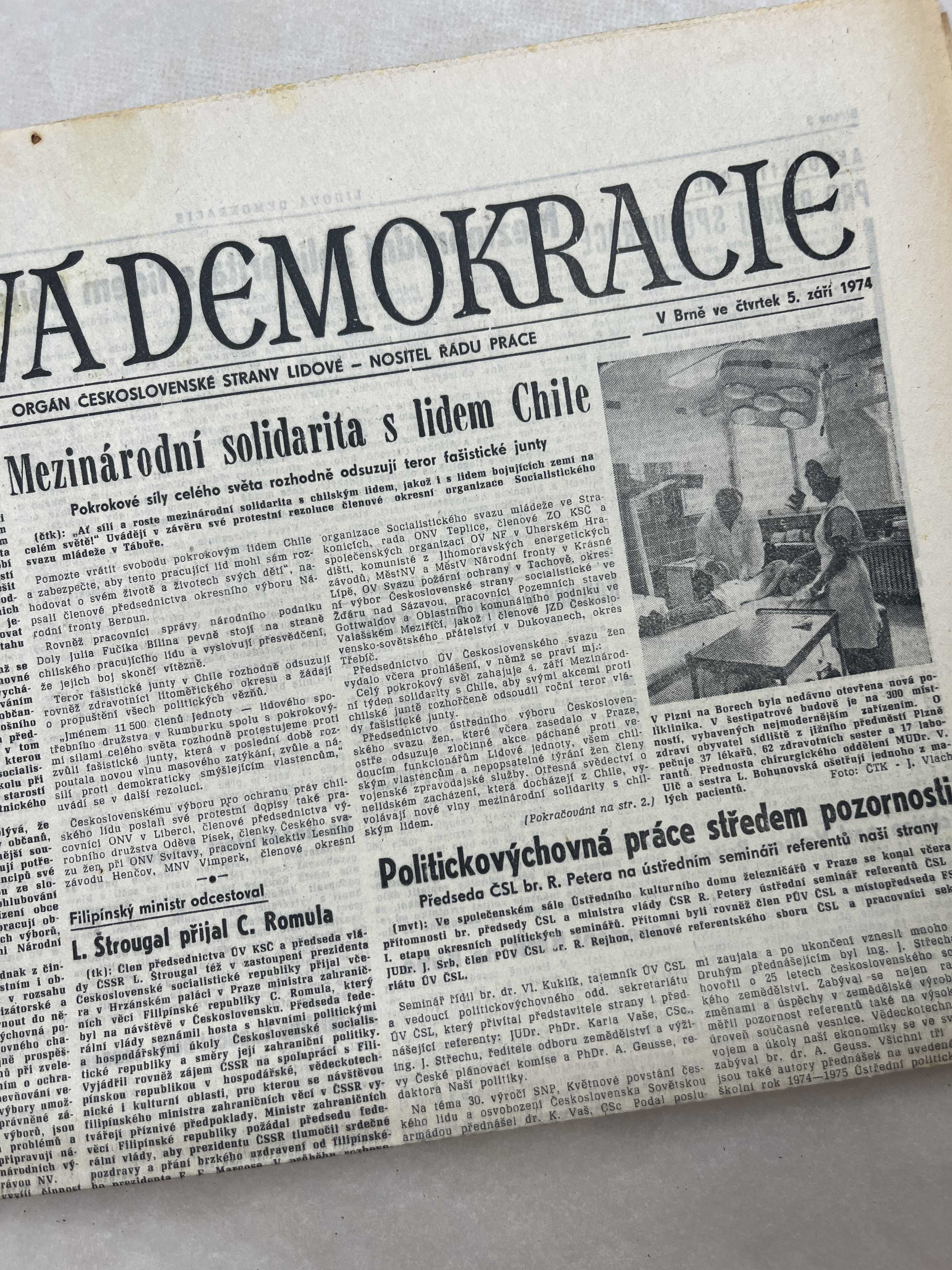 Noviny Lidová demokracie 5.9.1974