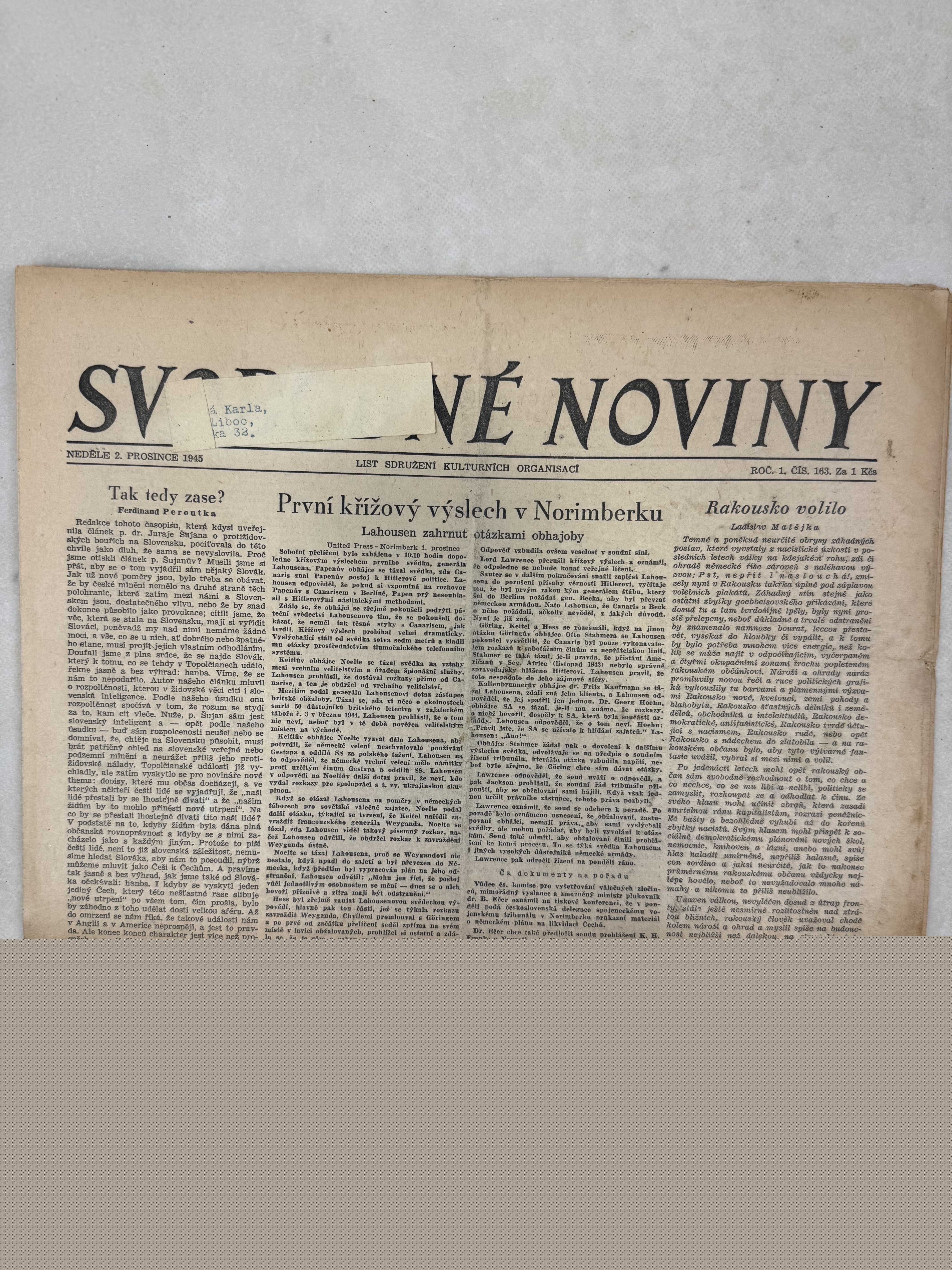 Svobodné noviny 2.12.1945