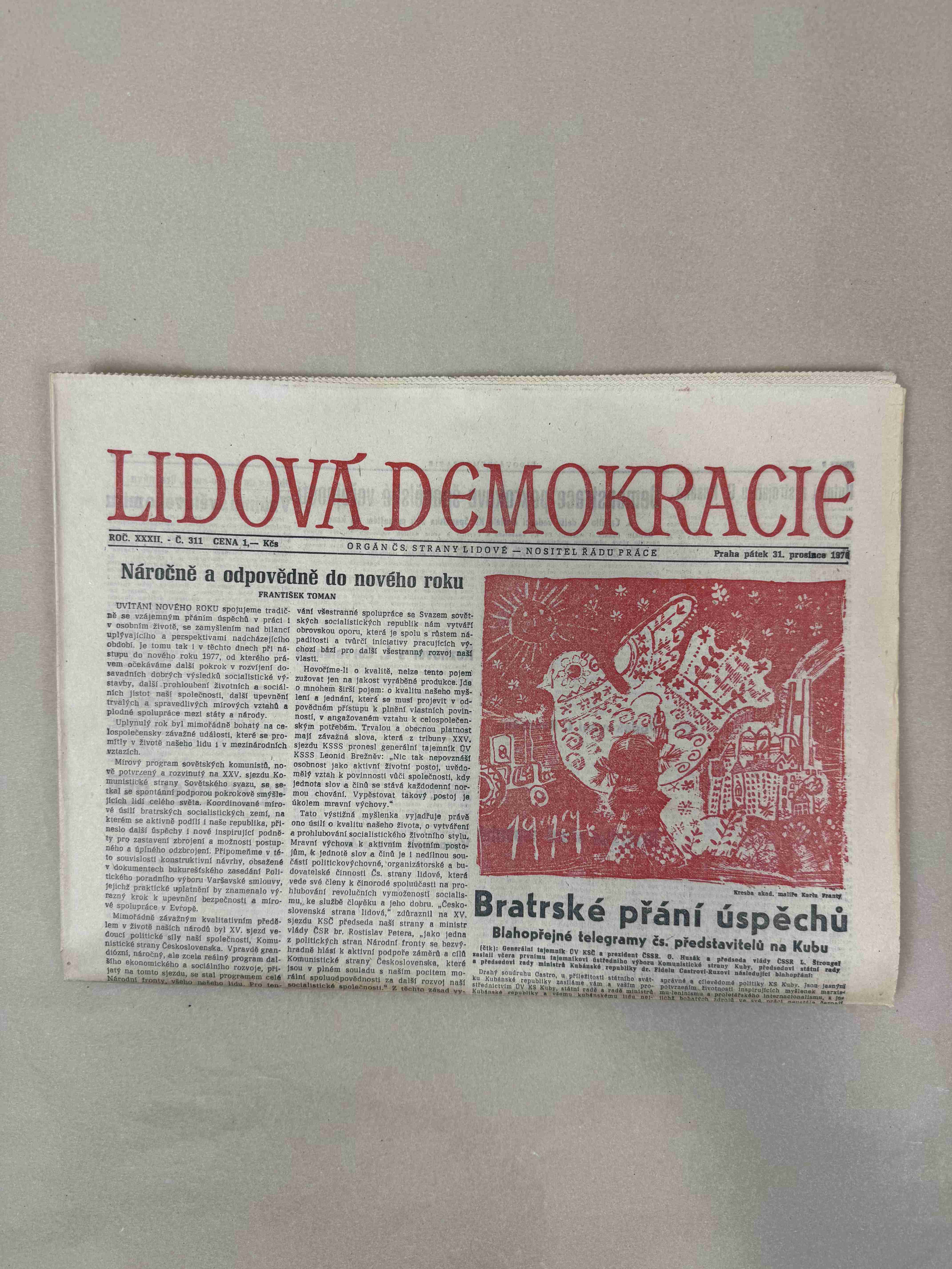 Originální dobový výtisk novin, nejedná se o reprodukci!