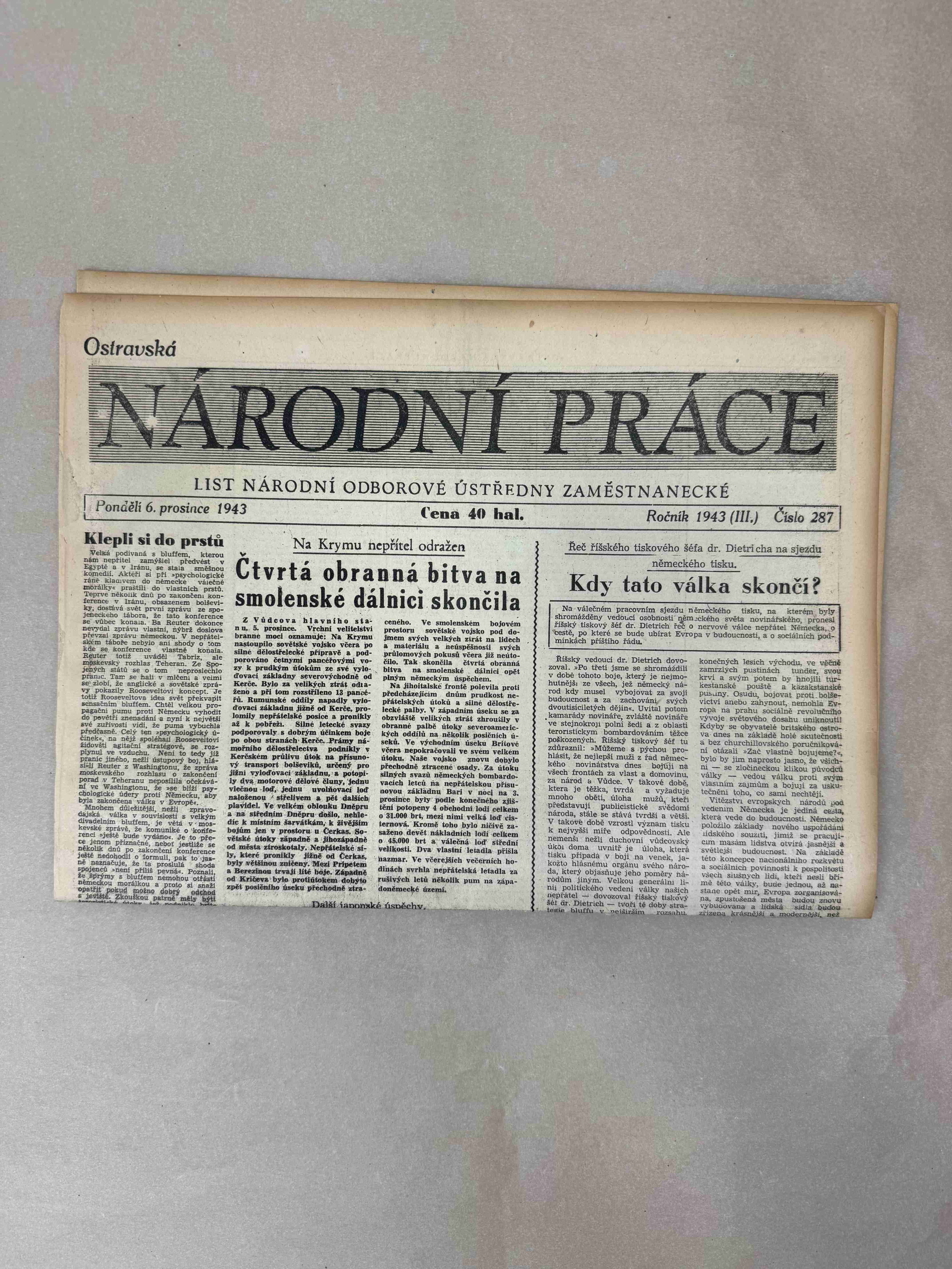 Nabízené noviny jsou určeny výhradně ke sběratelským účelům a neslouží k propagaci jakéhokoliv hnutí směřujícího k potlačení práv a svobod člověka (nacistického, komunistického apod.). Prodávající se distancuje od výše uvedených hnutí a jejich myšlenek.