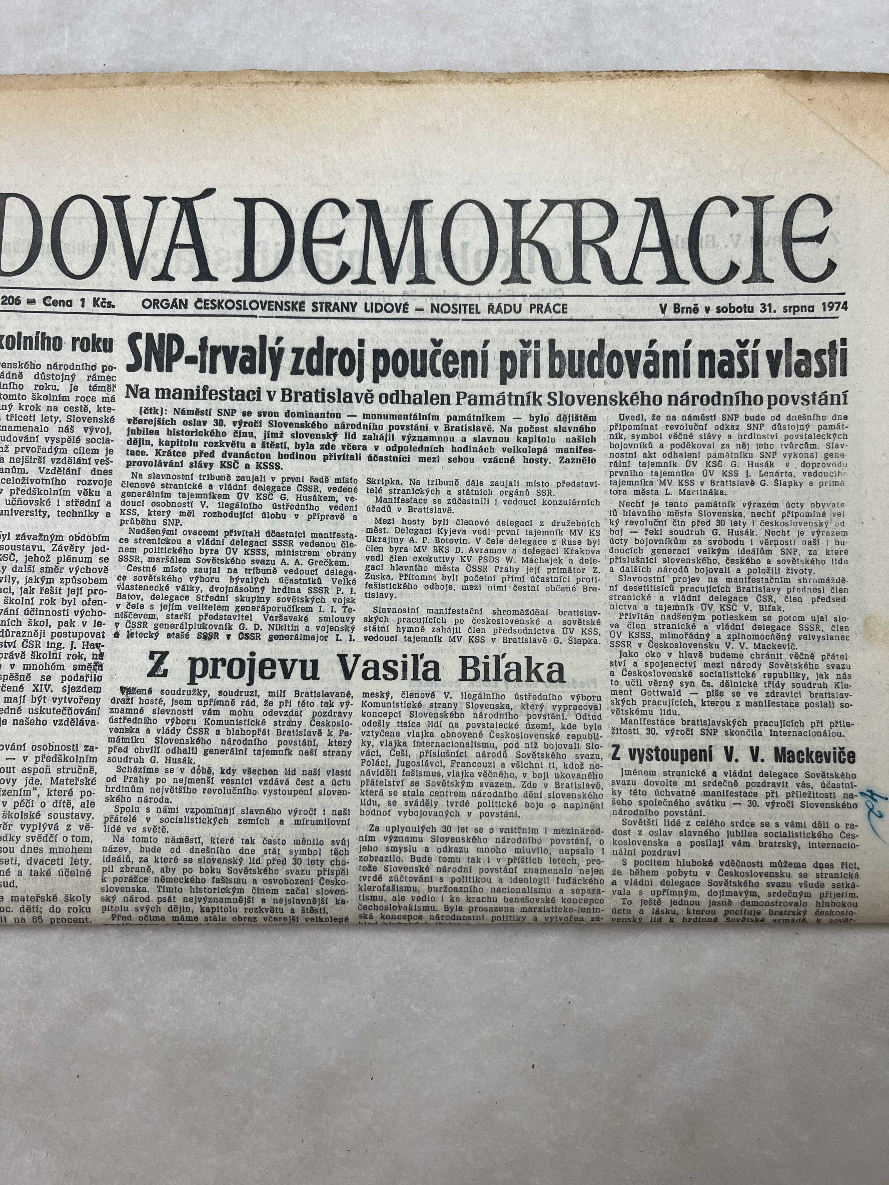 Noviny Lidová demokracie 31.8.1974