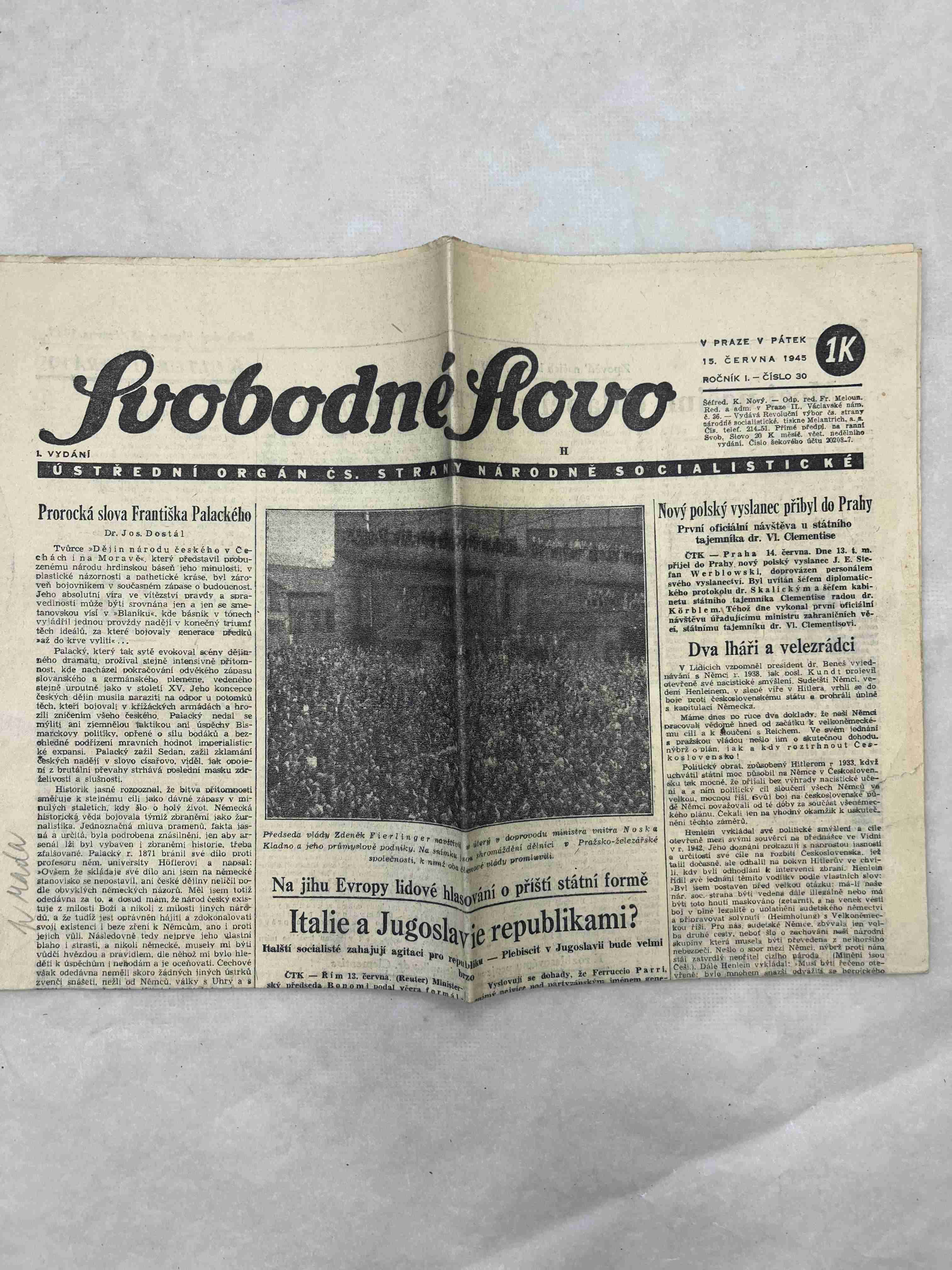 Originální dobový výtisk novin, nejedná se o reprodukci!