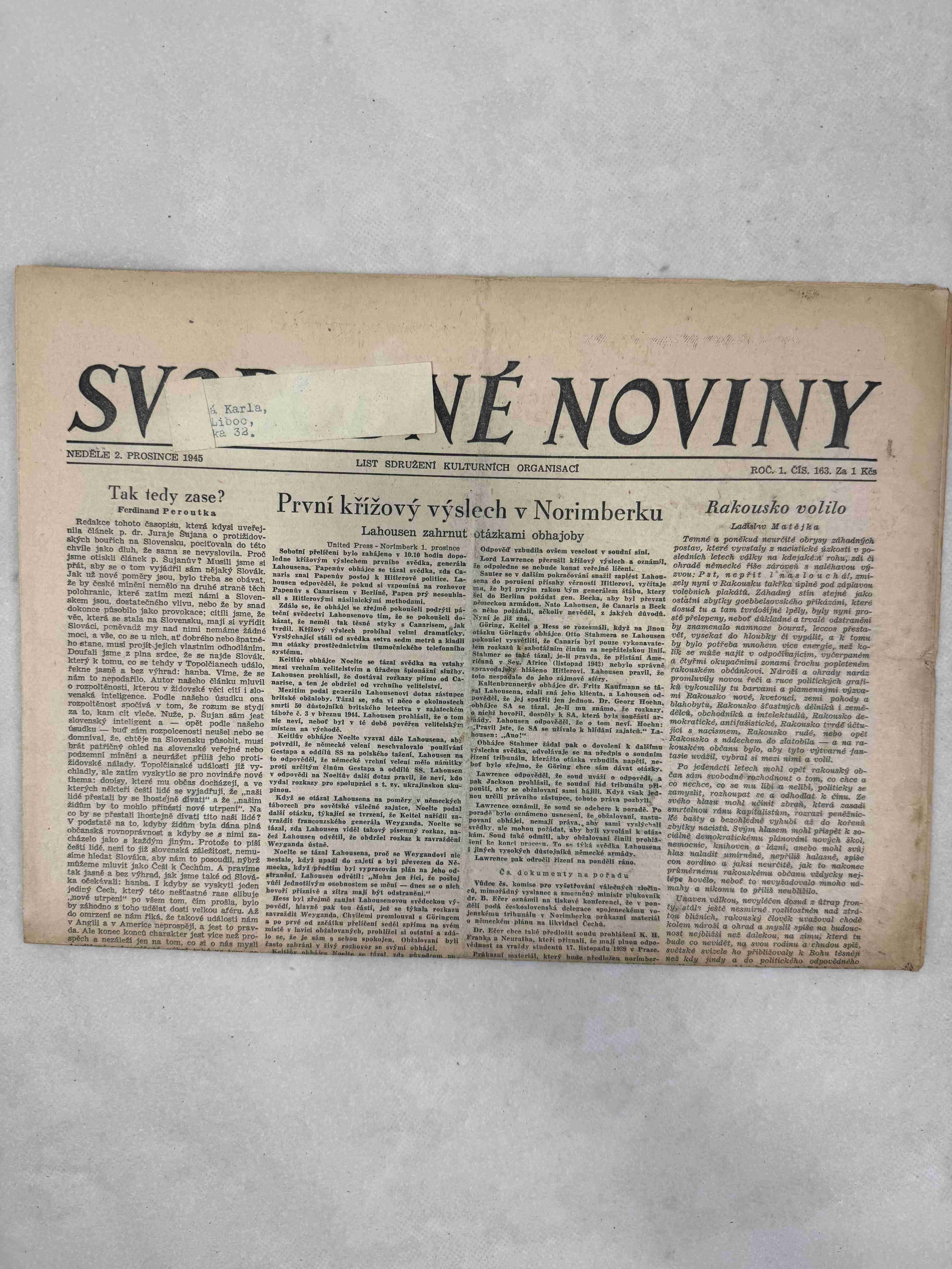 Svobodné noviny 1.12.1945