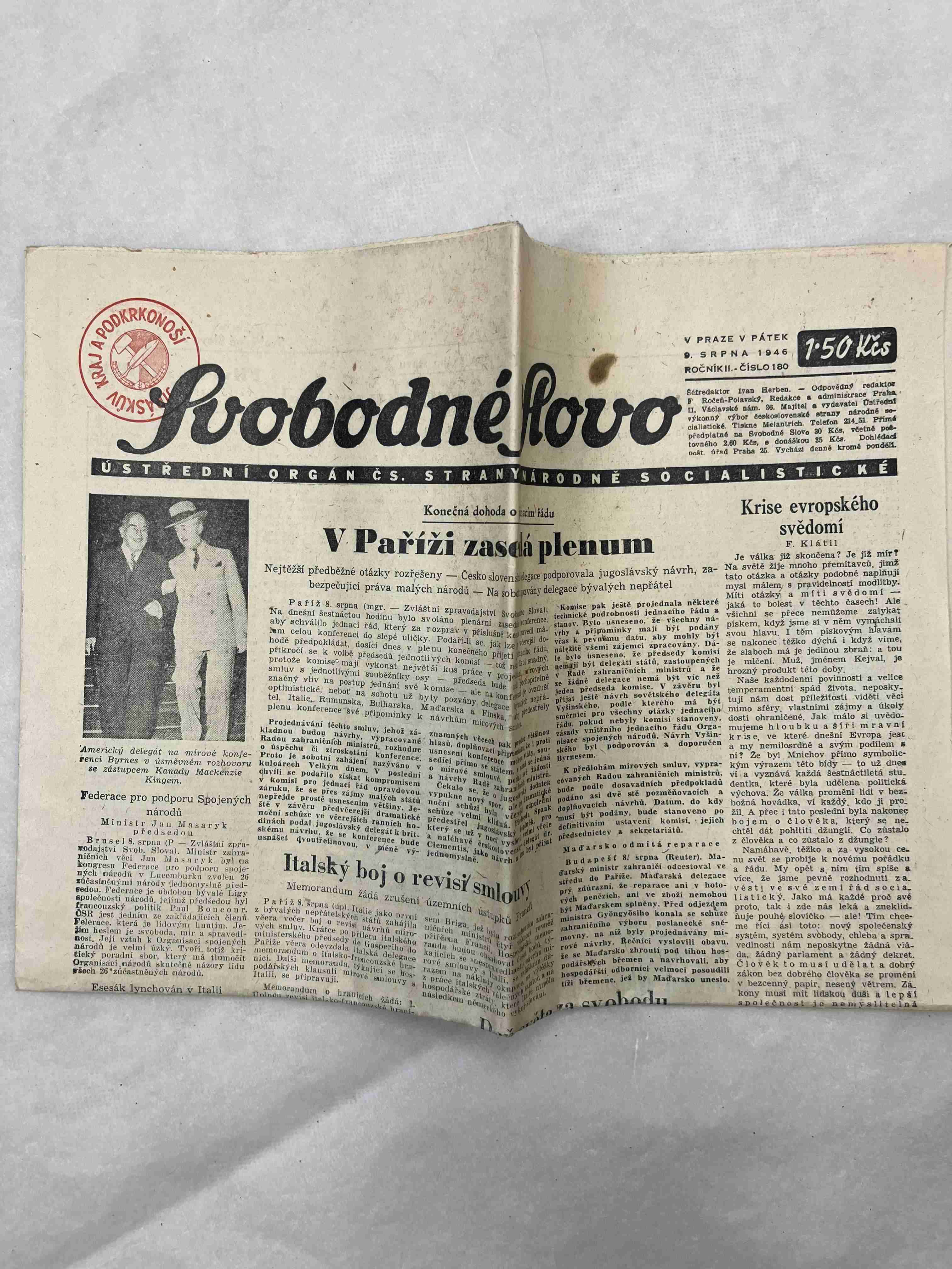Svobodné Československo 10.8.1946