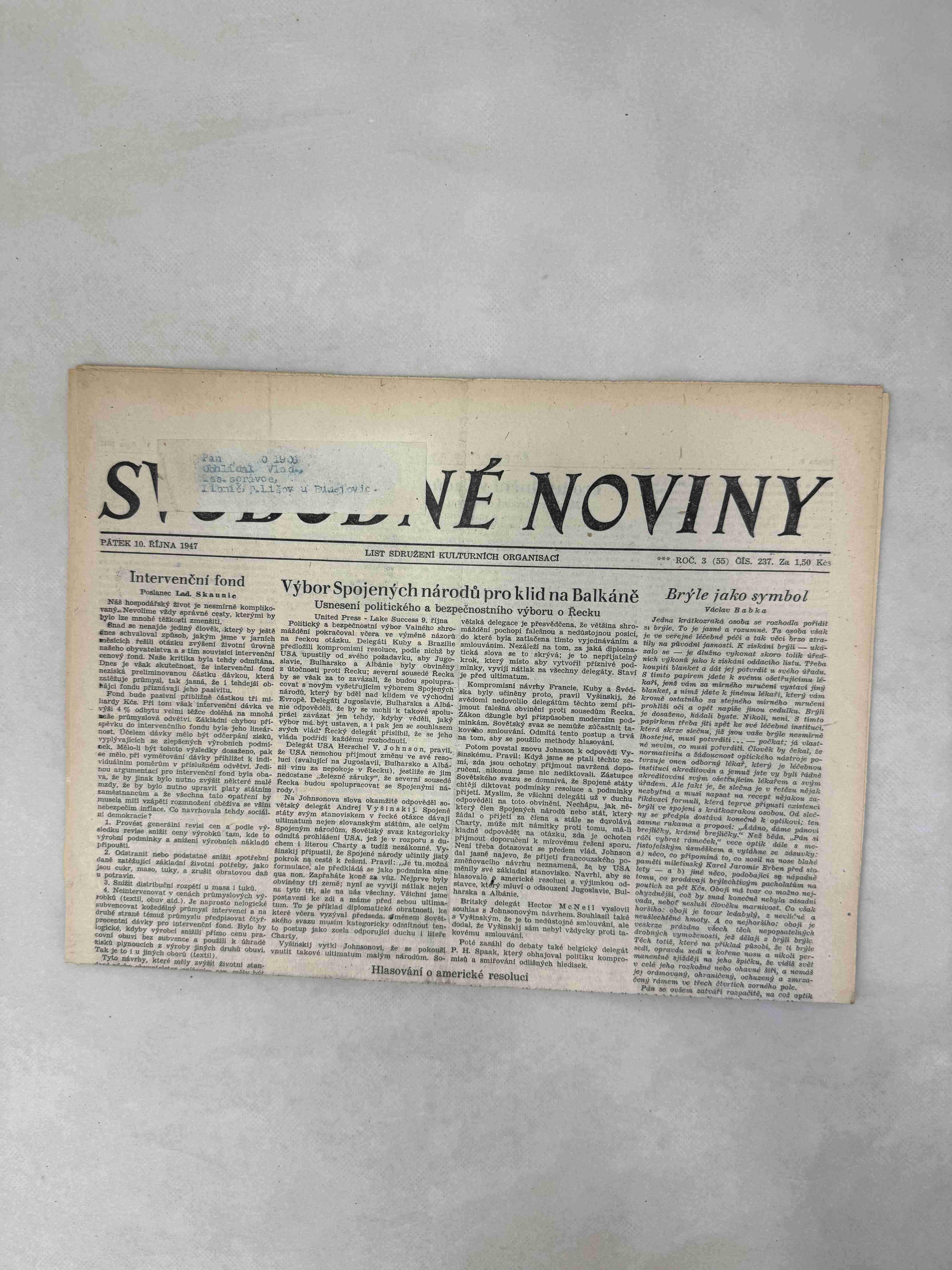 Svobodné noviny 10.10.1947