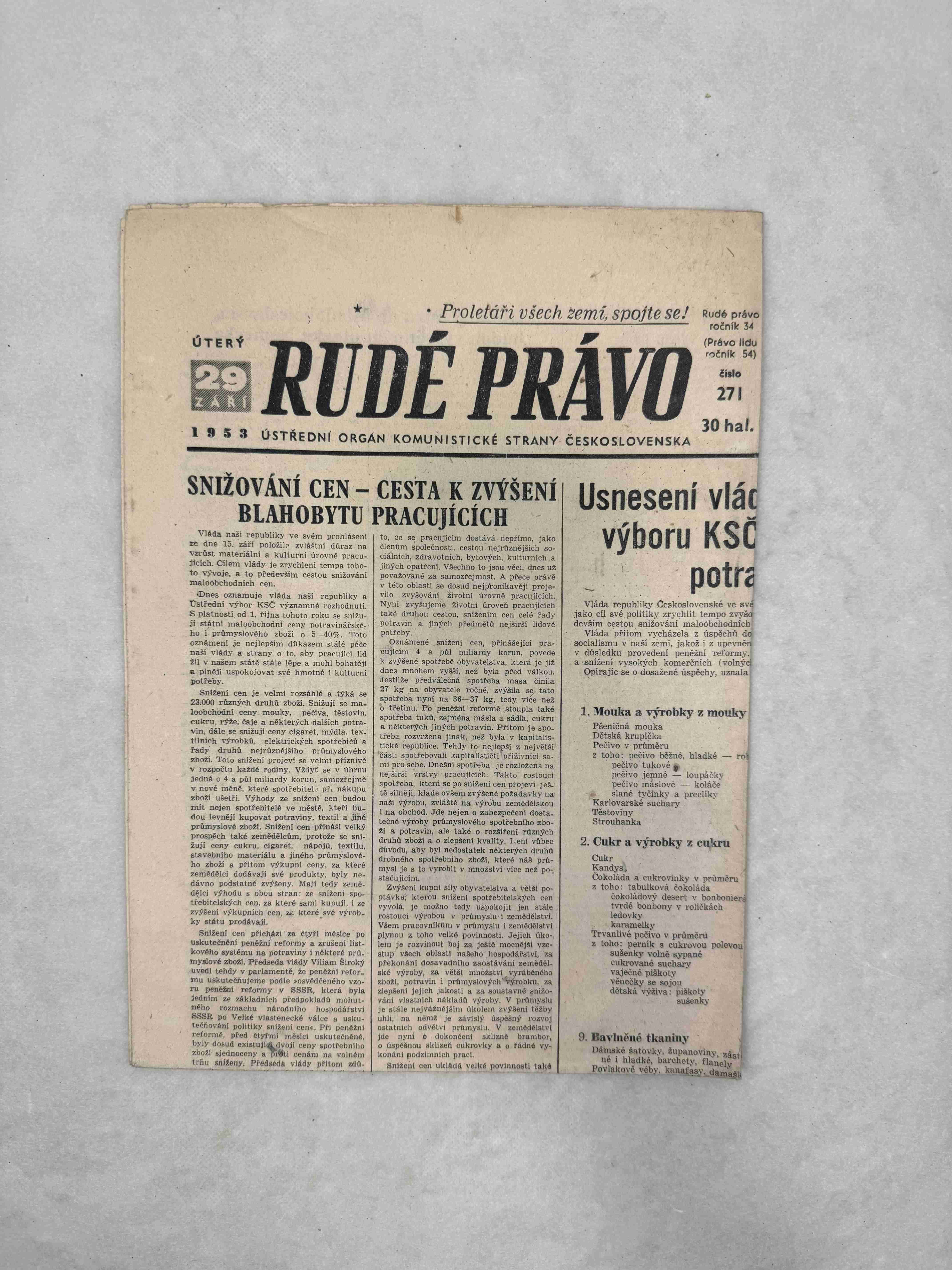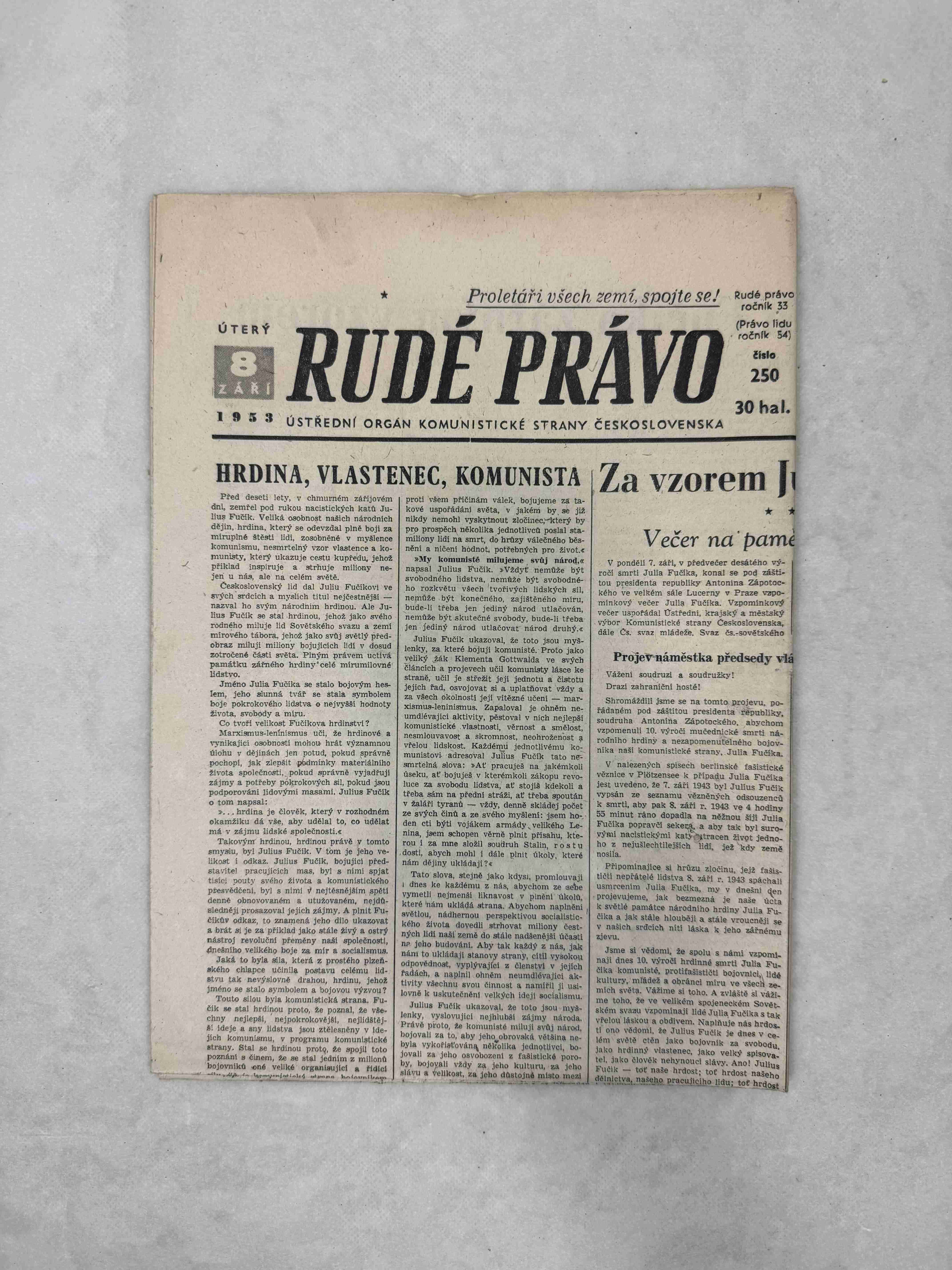 Noviny Rudé právo 16. 9. 1953