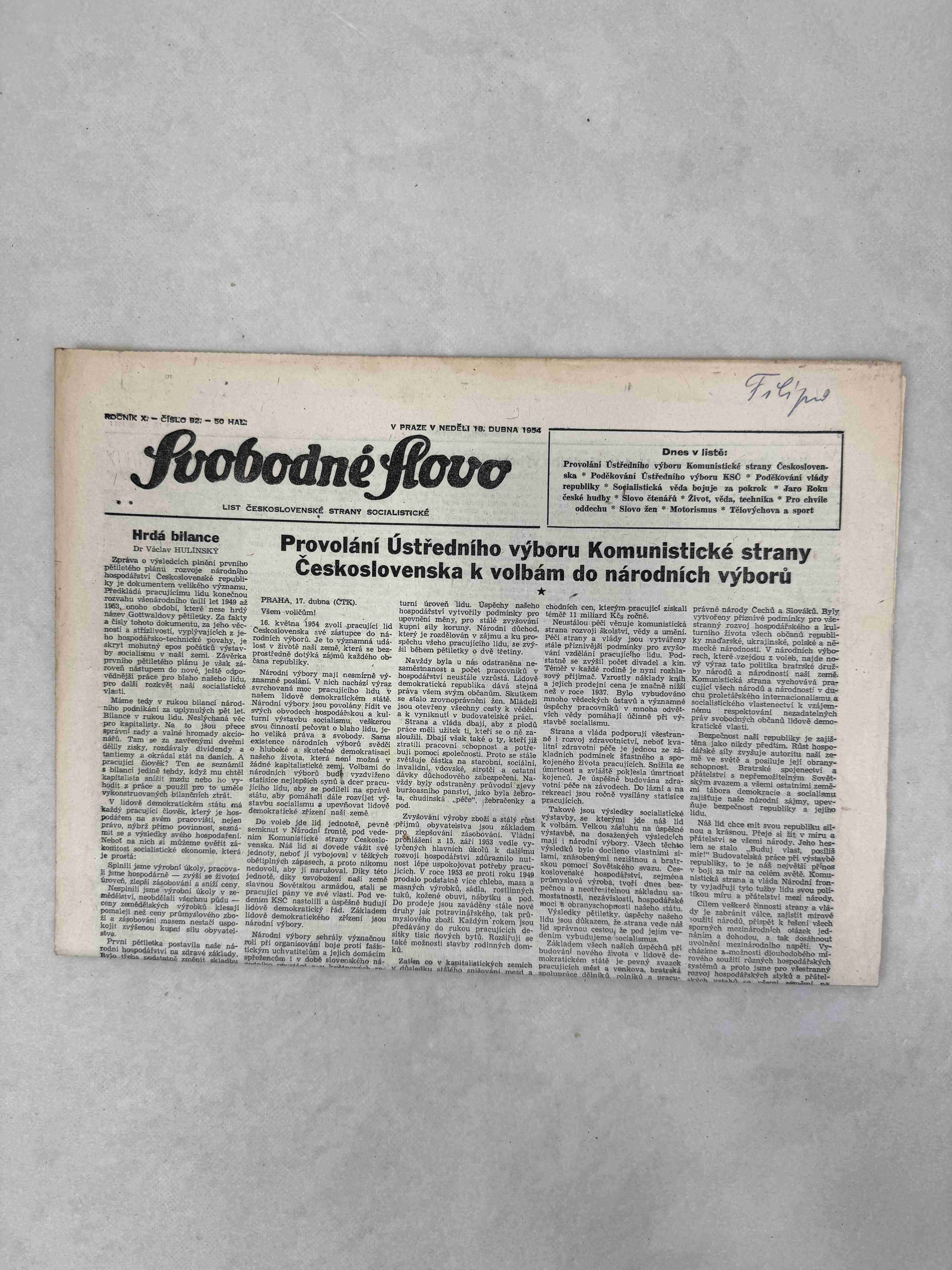 Svobodné slovo 9.4.1954