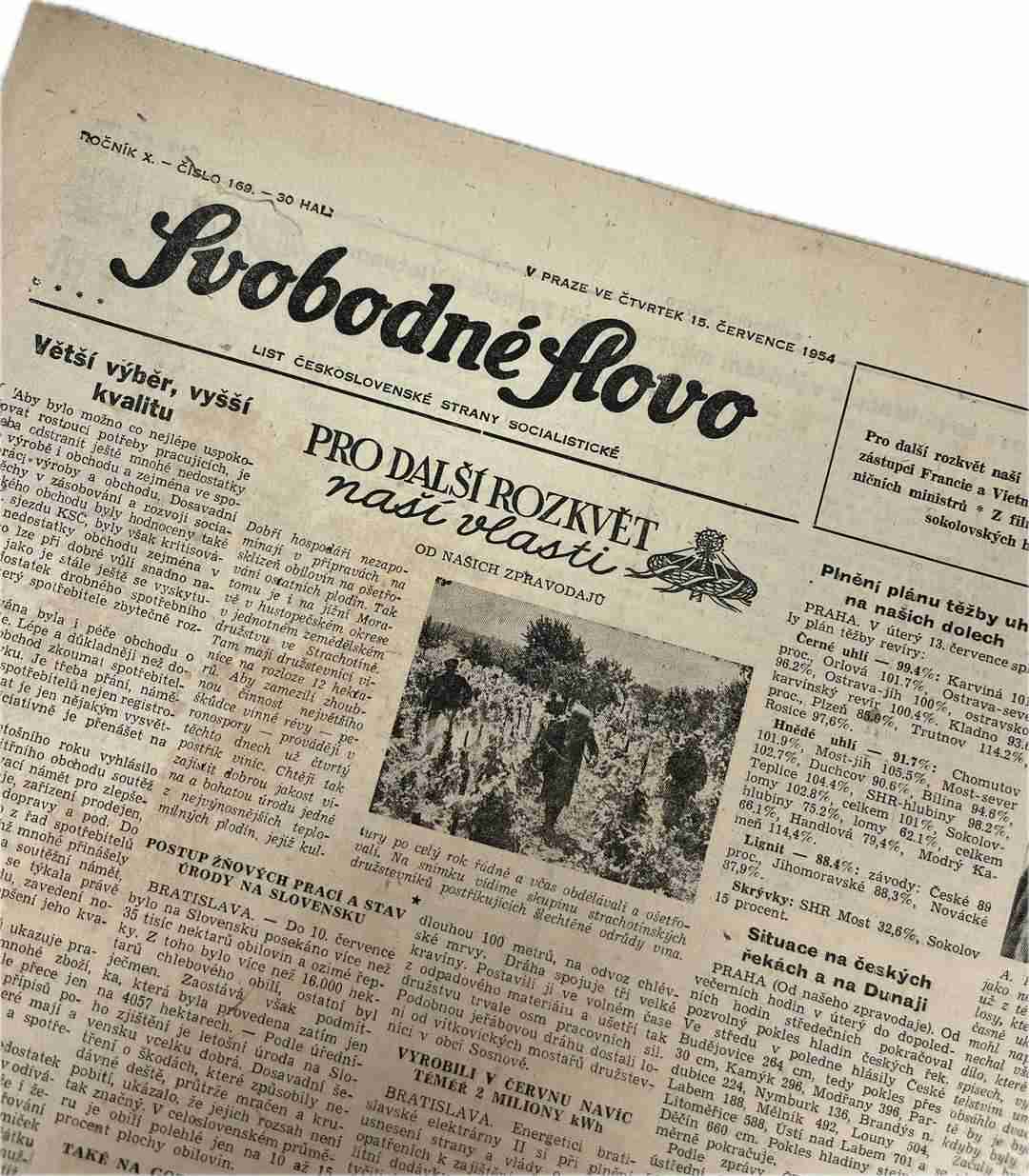 Noviny Svobodné slovo 15. 7. 1954