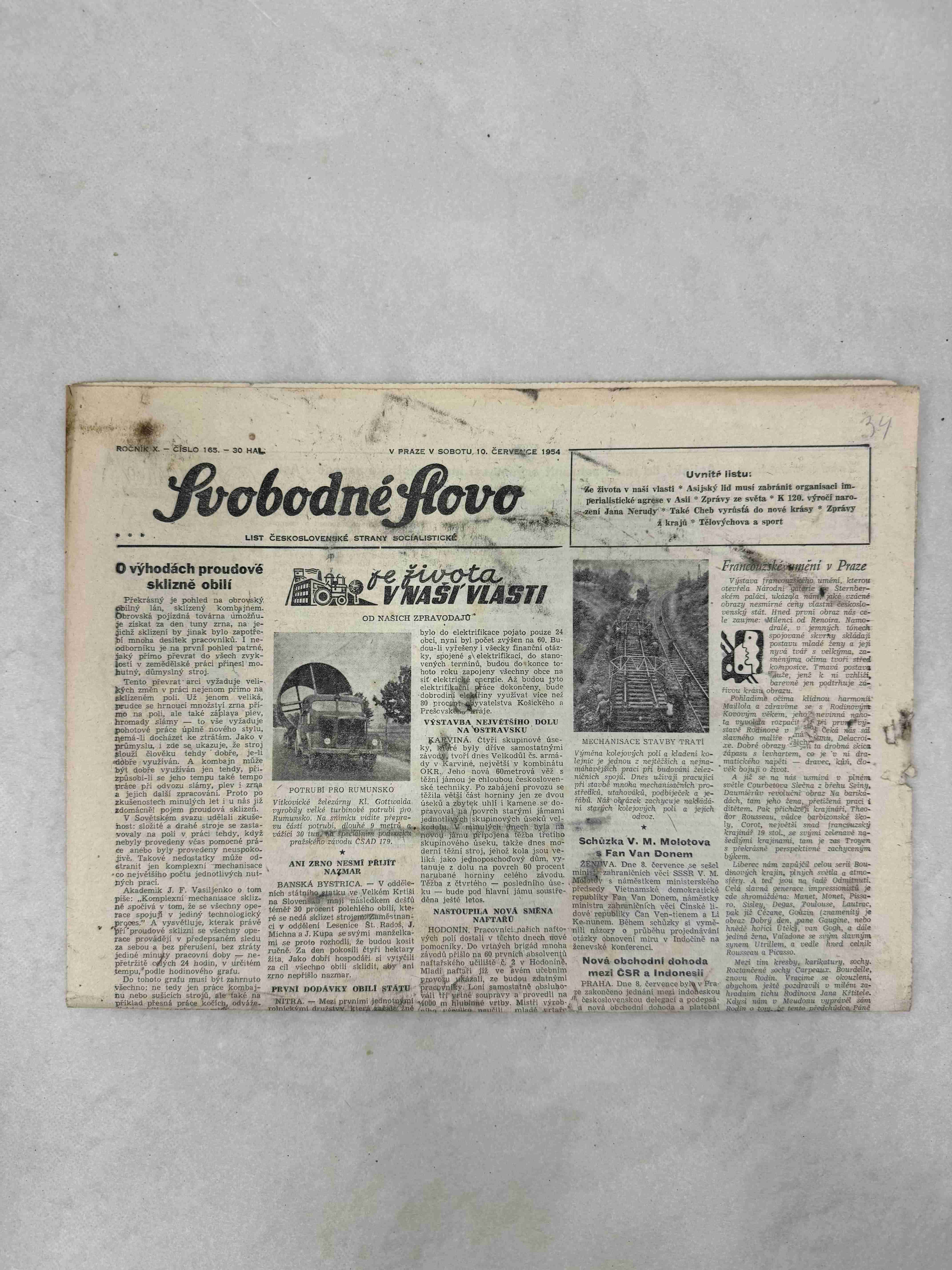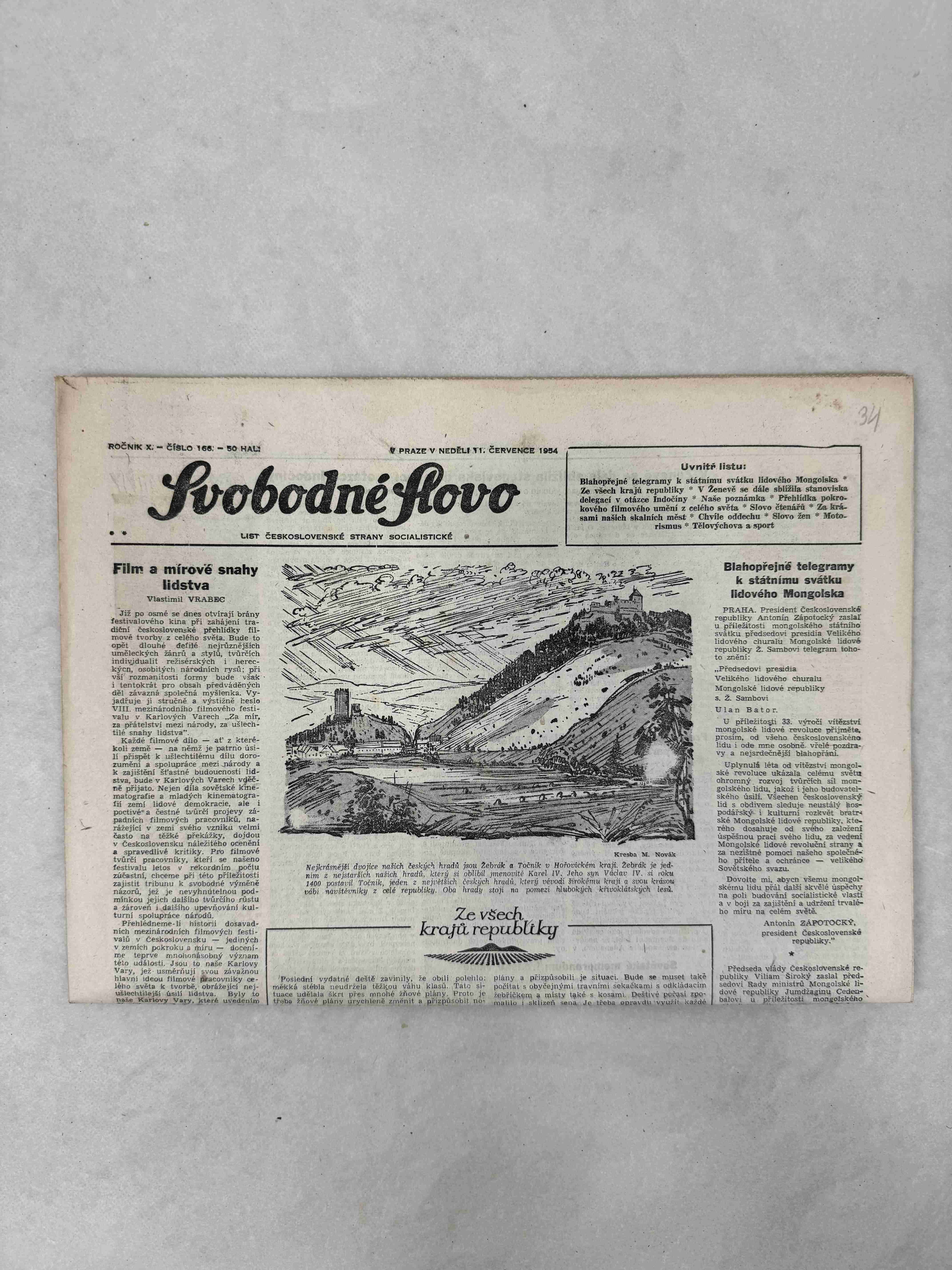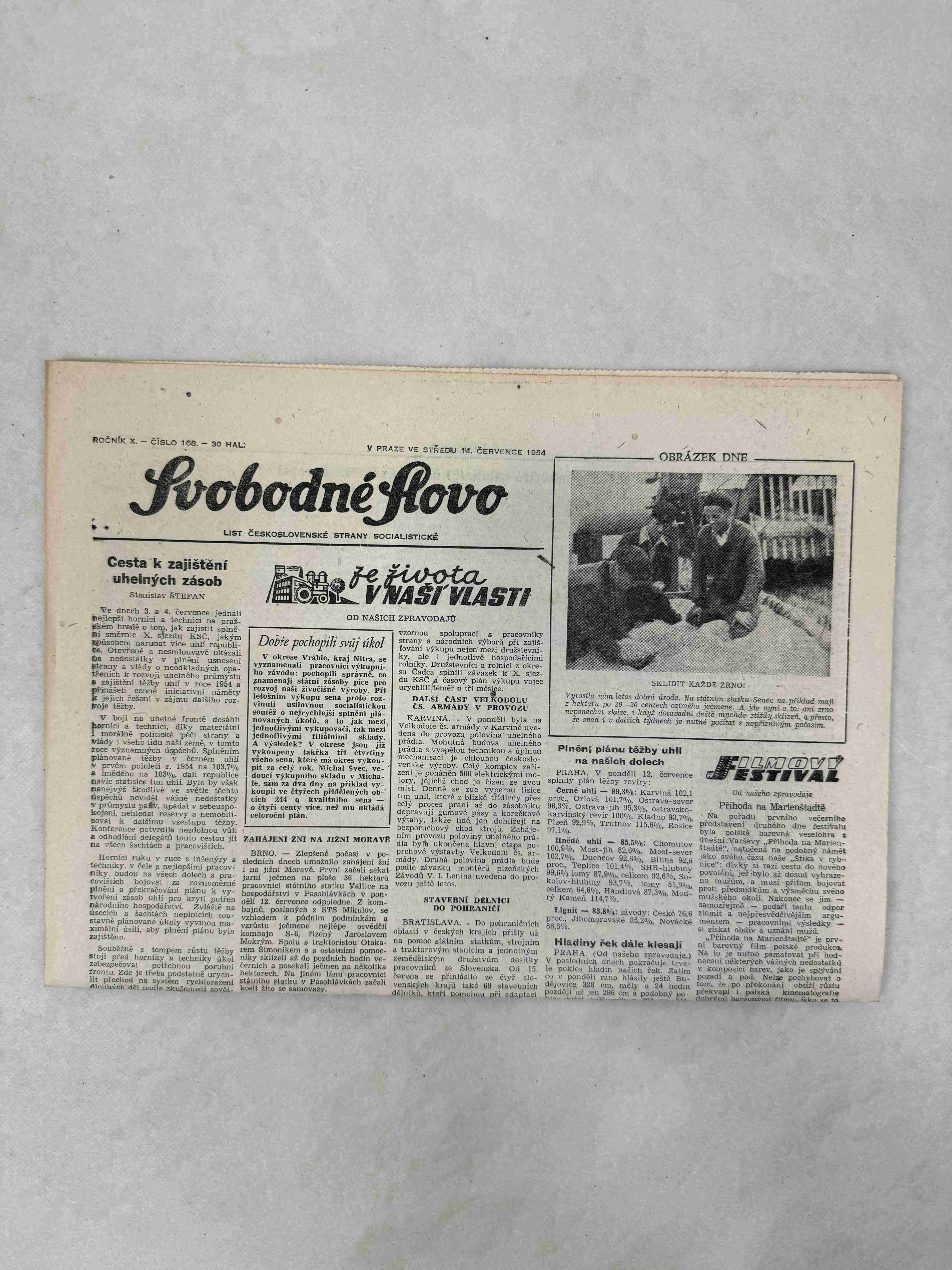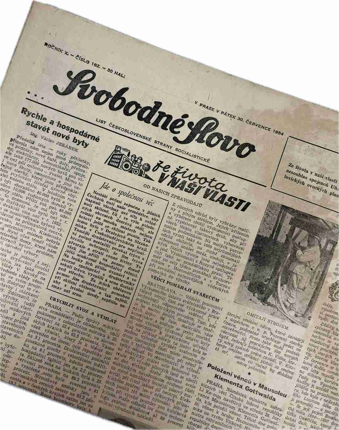 Noviny Svobodné slovo 30. 7. 1954