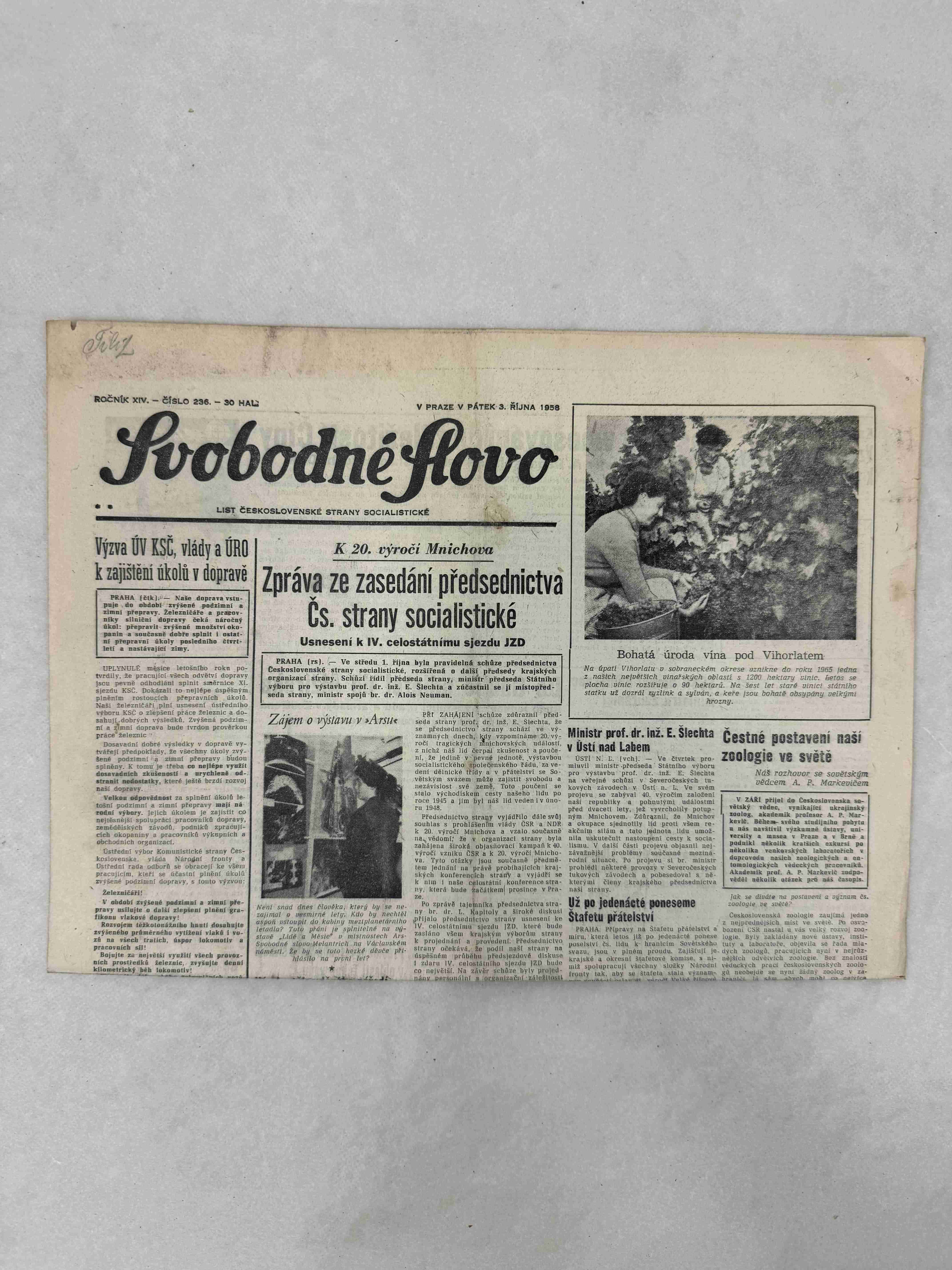 Svobodné slovo 3.10.1958