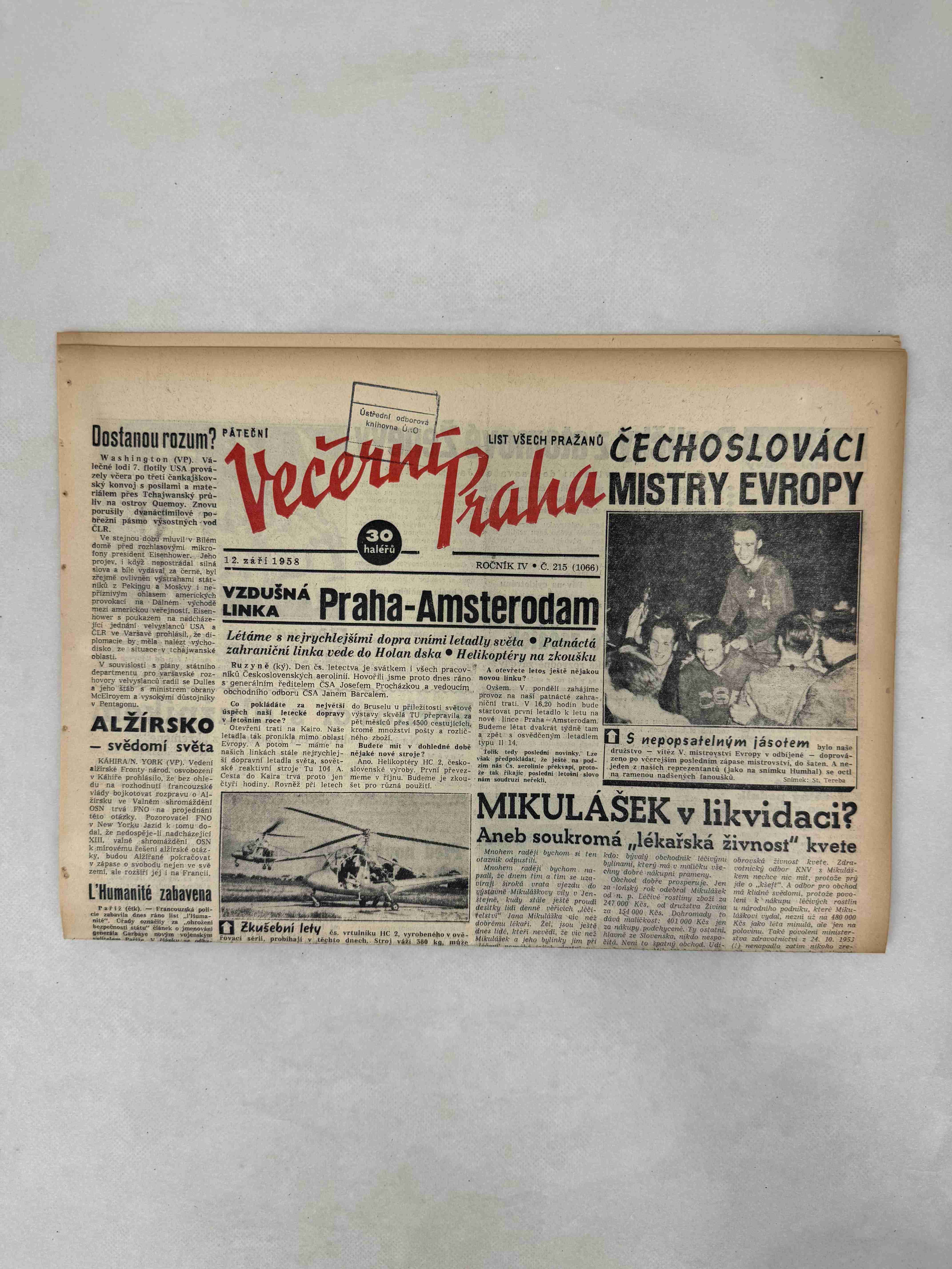 Večerní Praha 12.9.1958