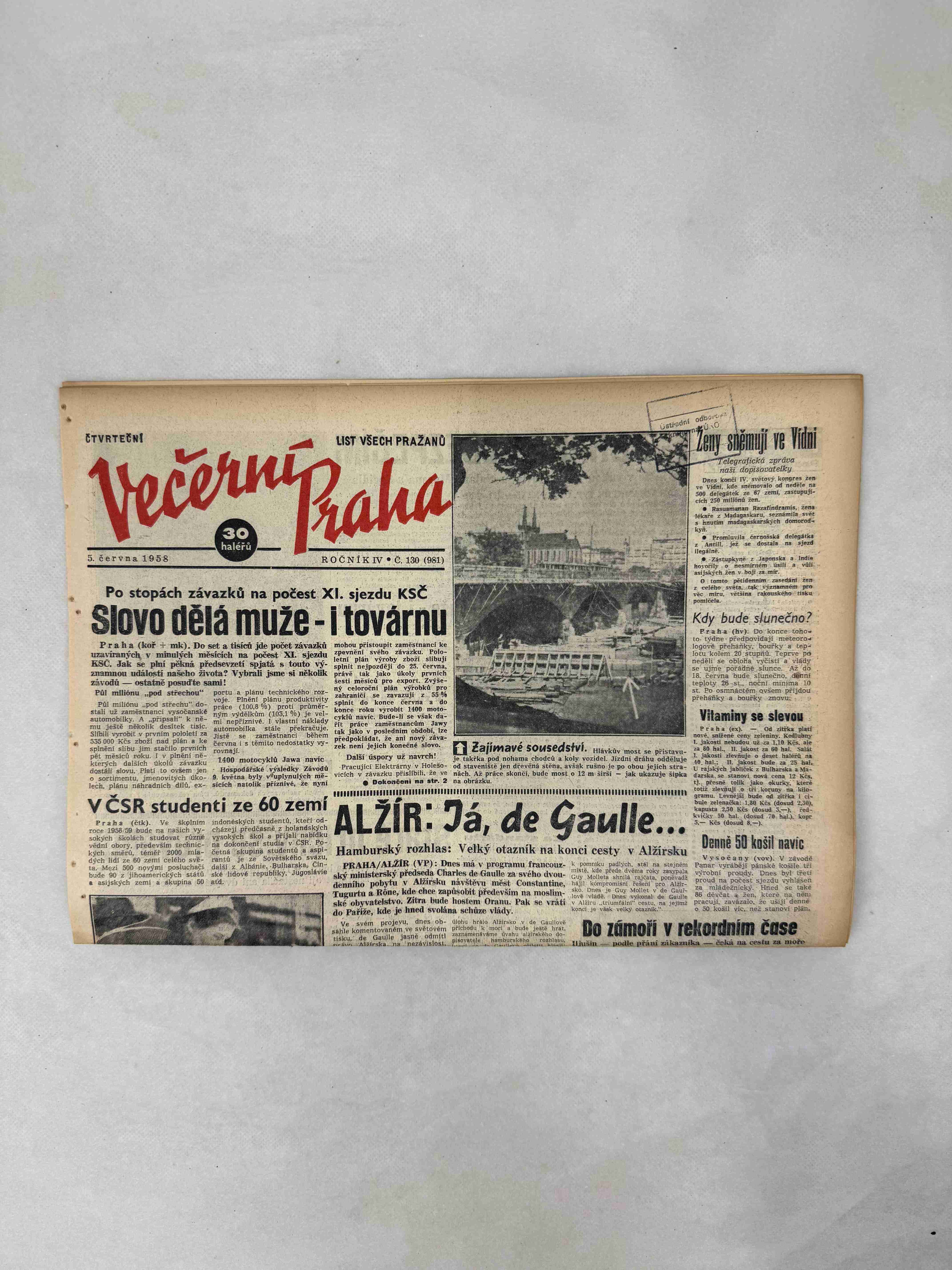 Večerní Praha 30.5.1958
