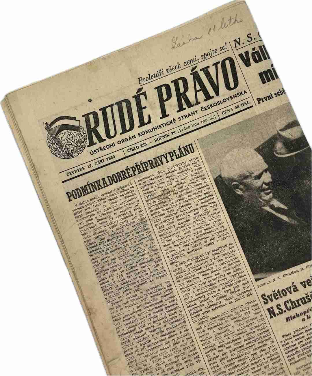 Noviny Rudé právo 17. 9. 1959