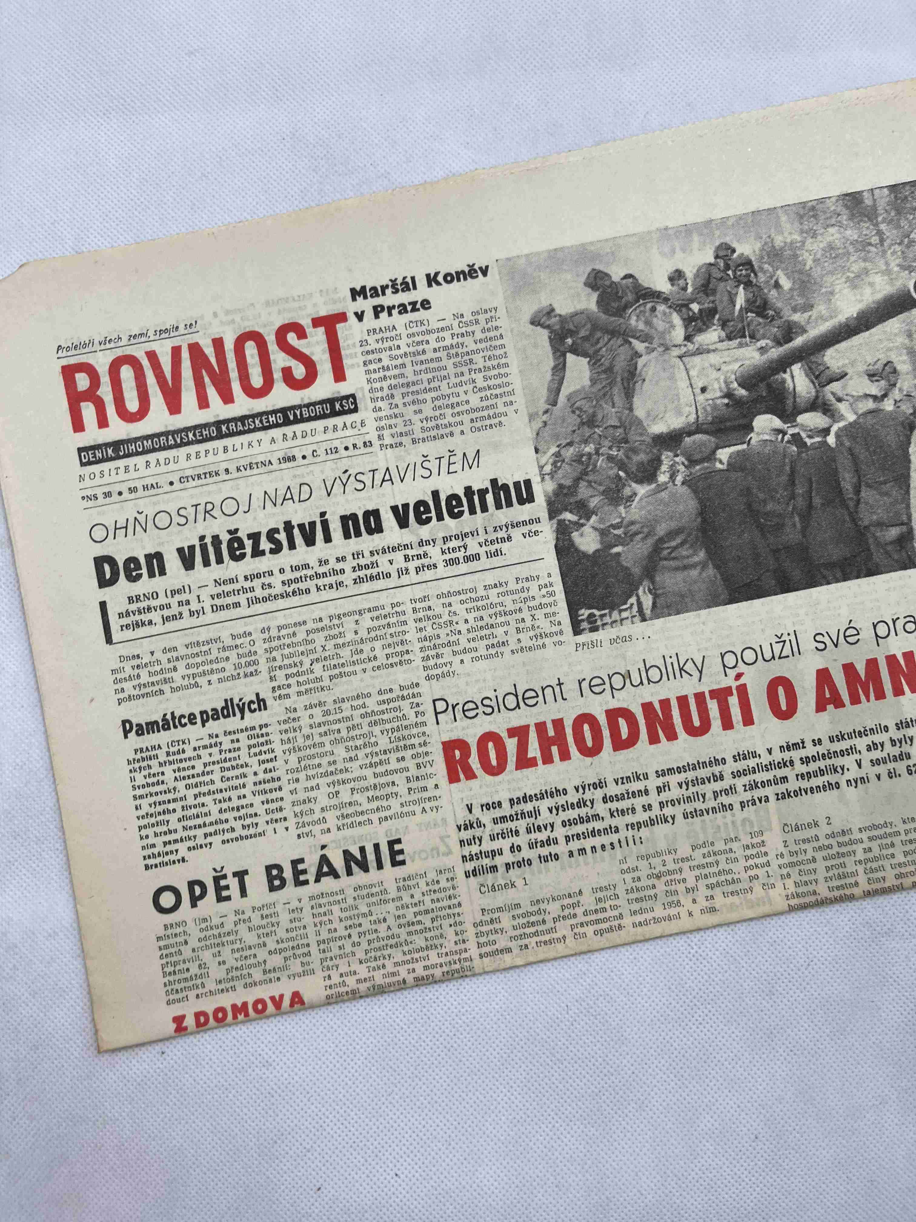 Noviny Rovnost 9.5.1968