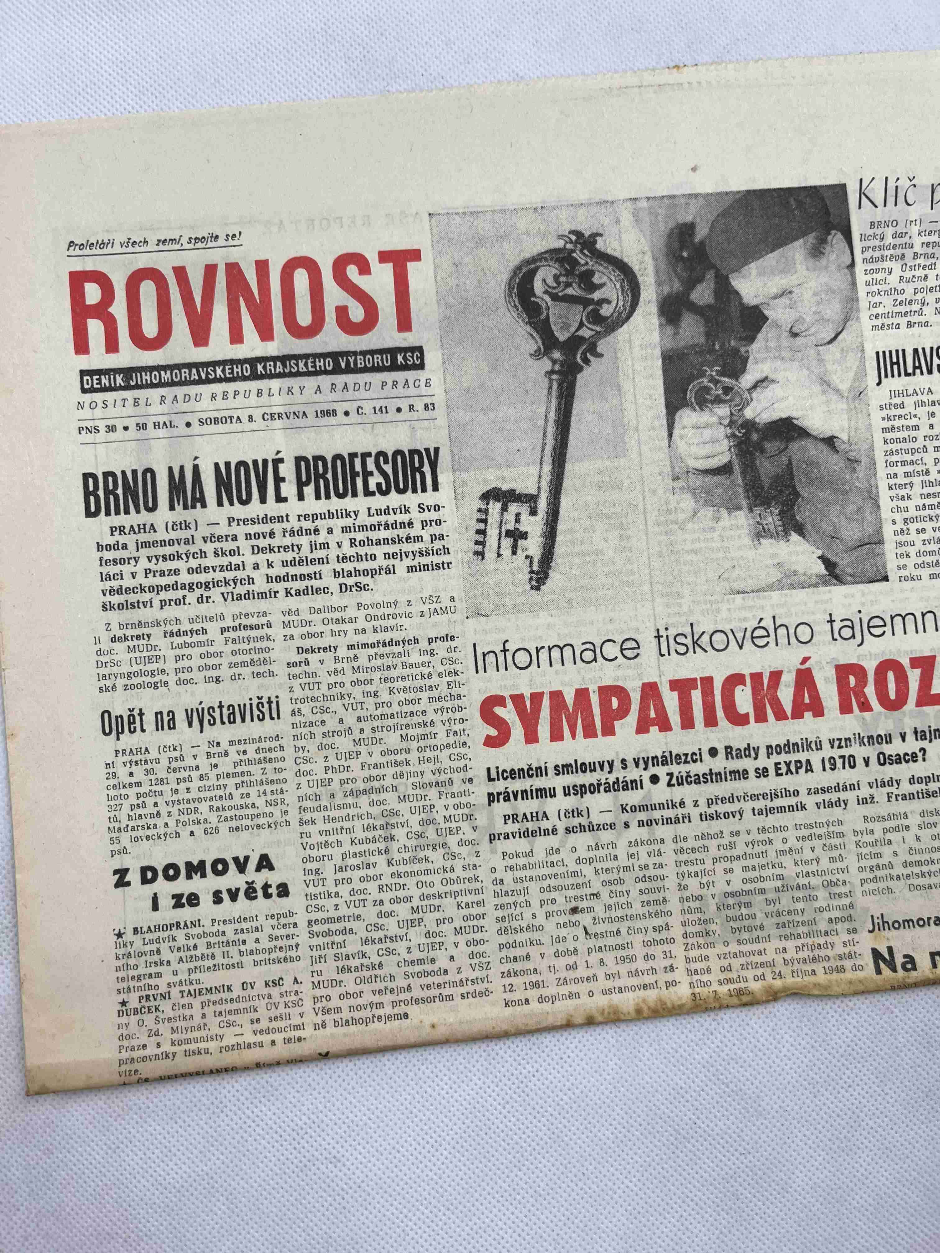 Noviny Rovnost 9.6.1968