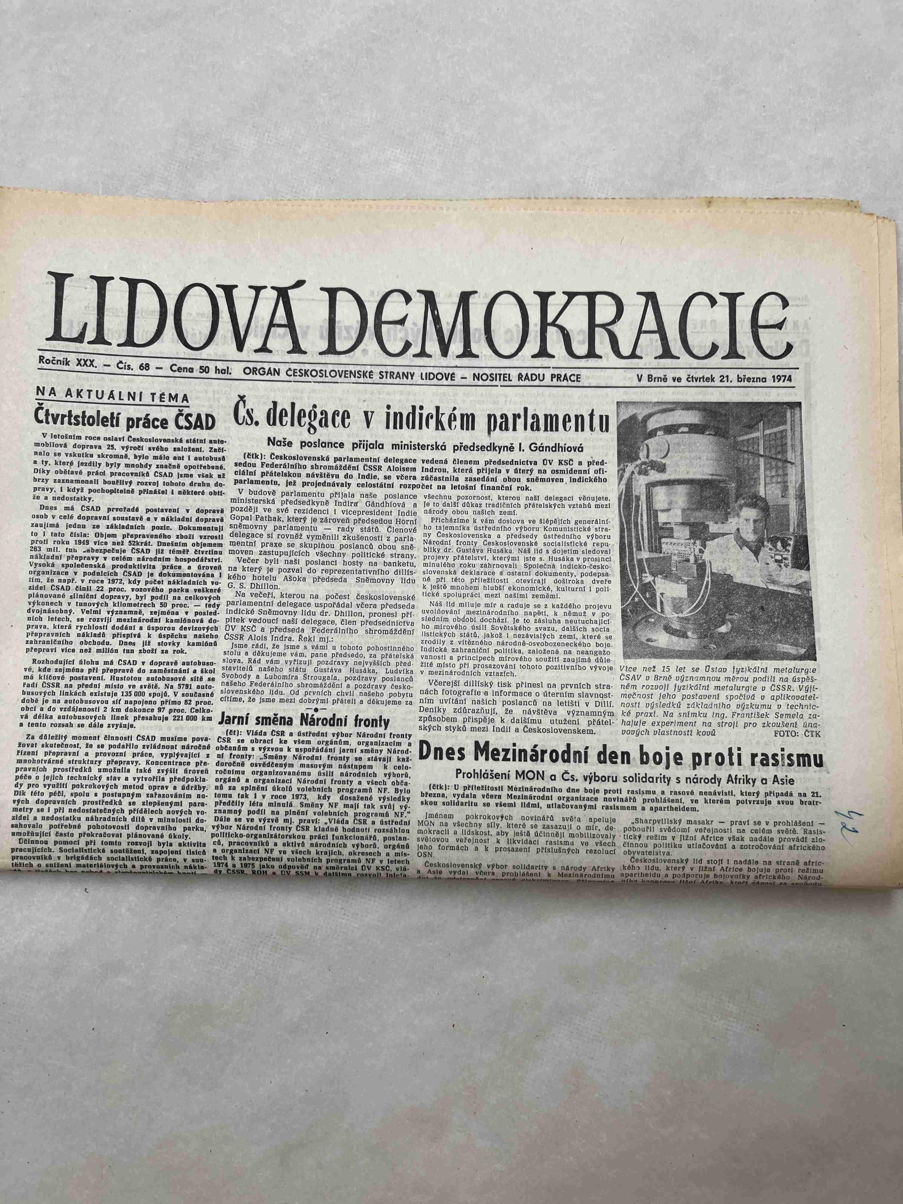 Noviny Lidová demokracie 21.3.1974