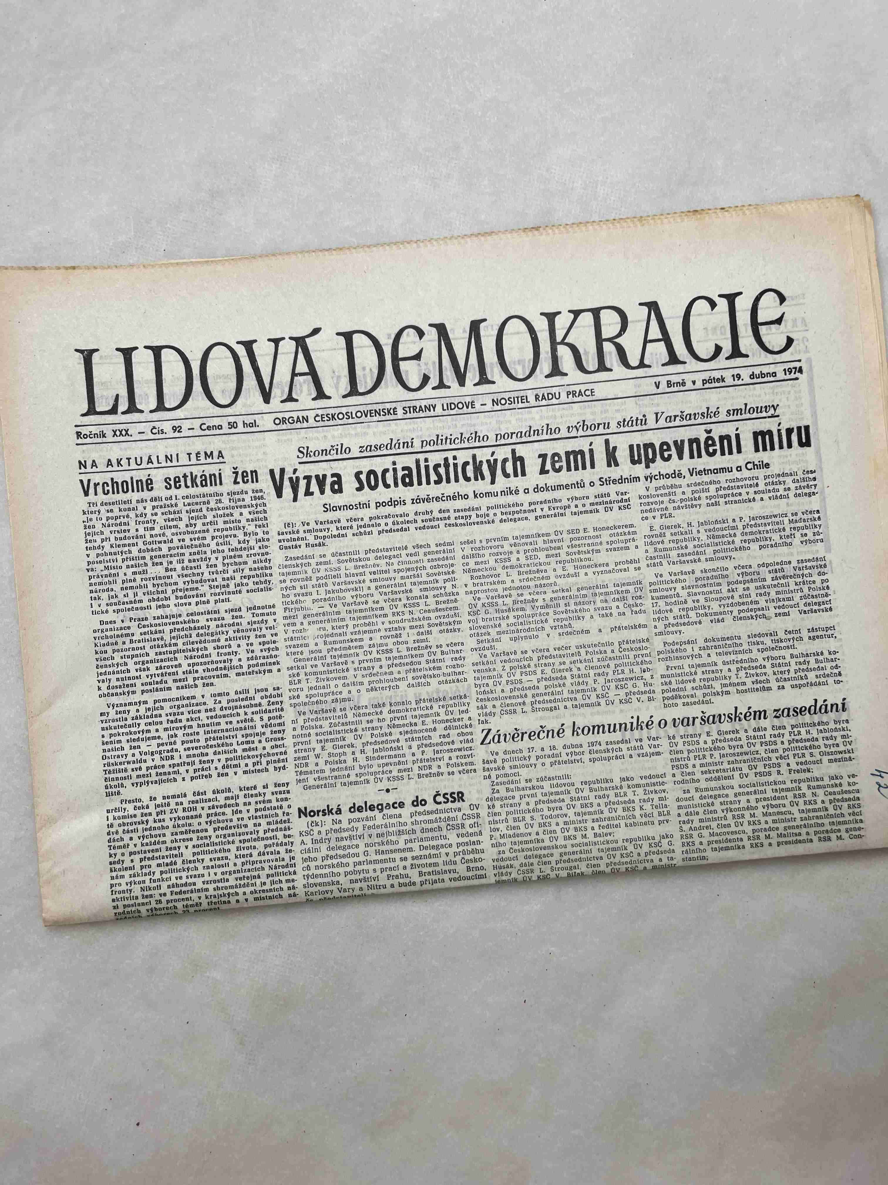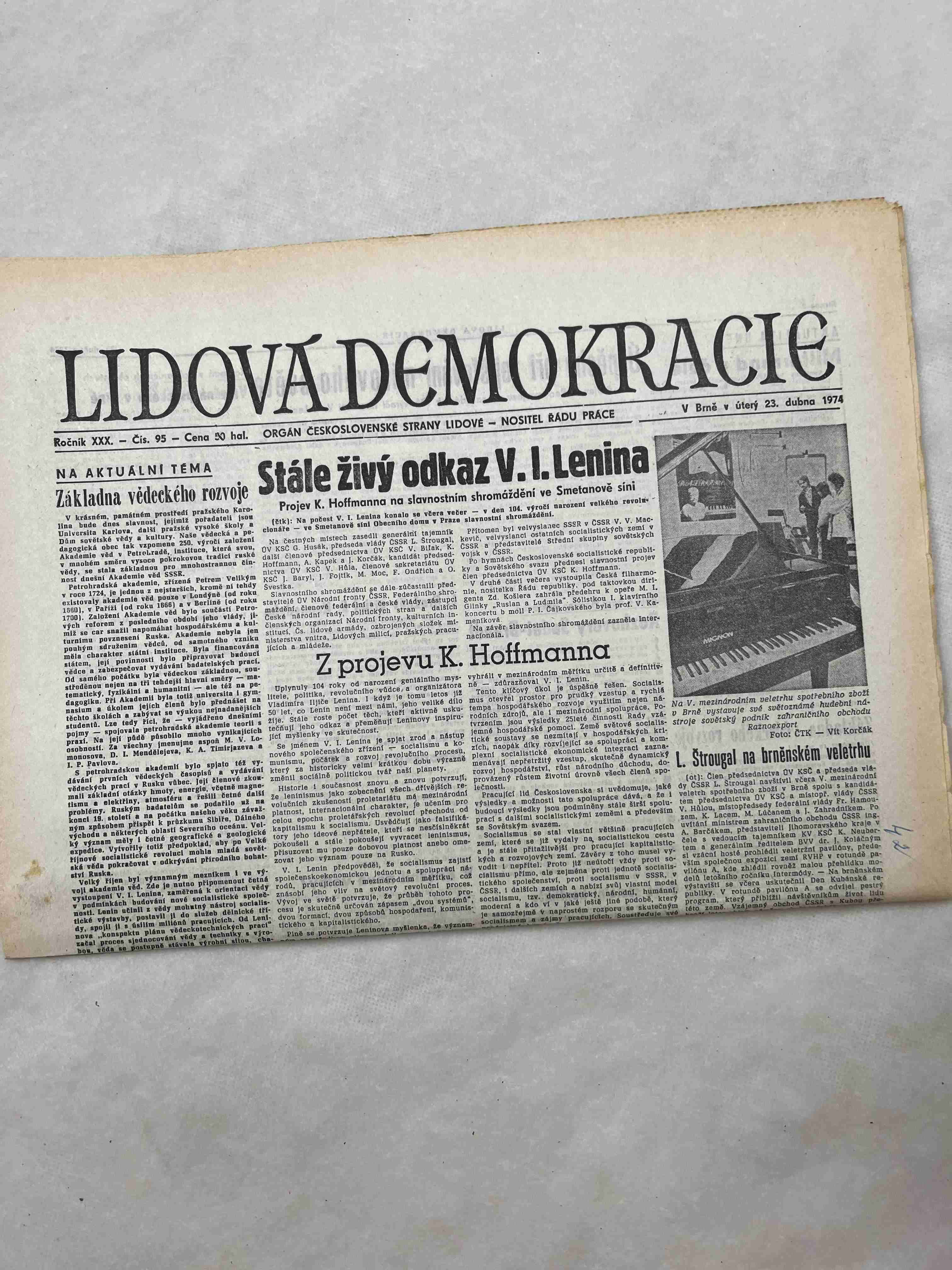 Noviny Lidová demokracie 20.4.1974