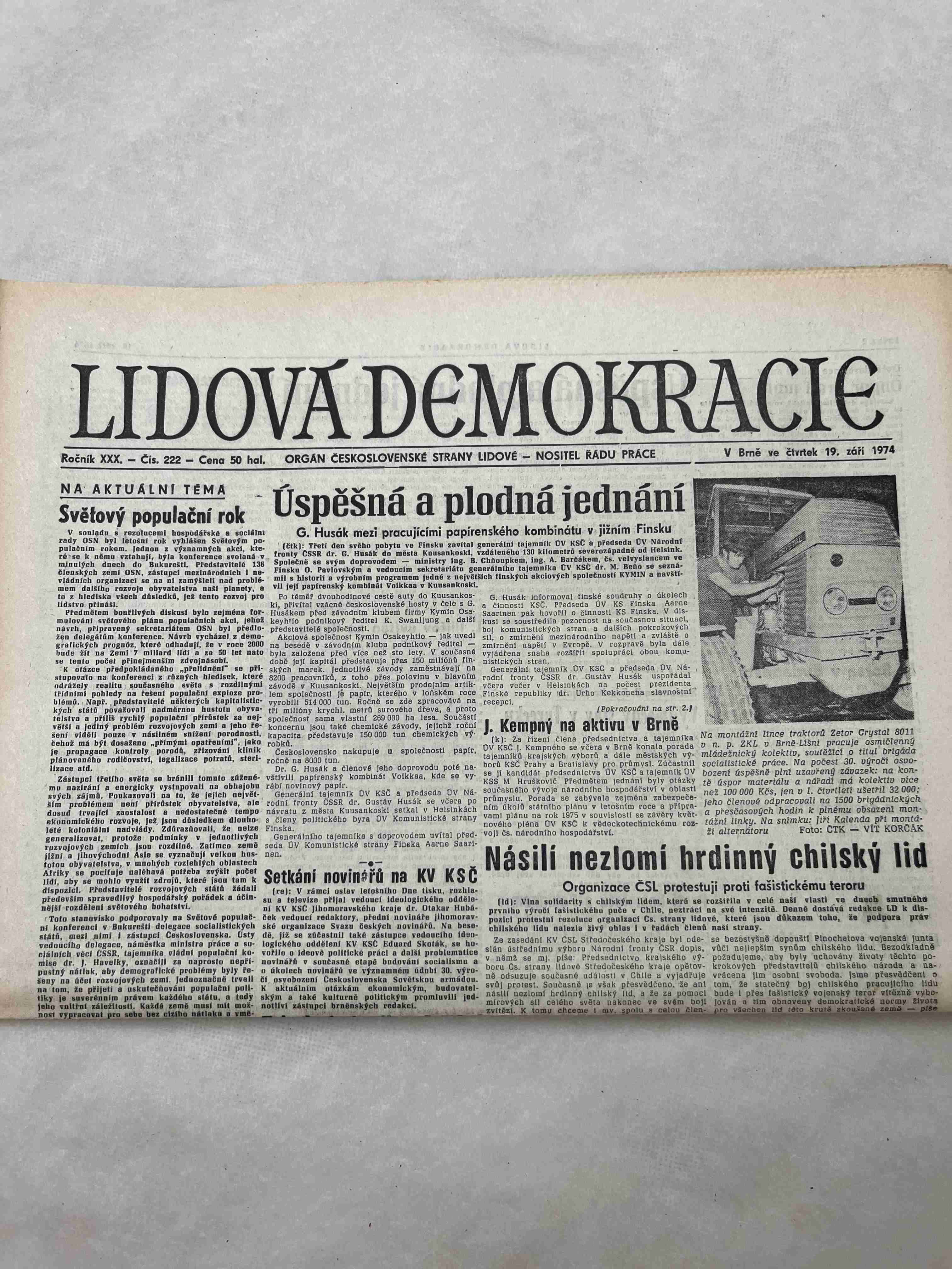 Noviny Lidová demokracie 19.9.1974