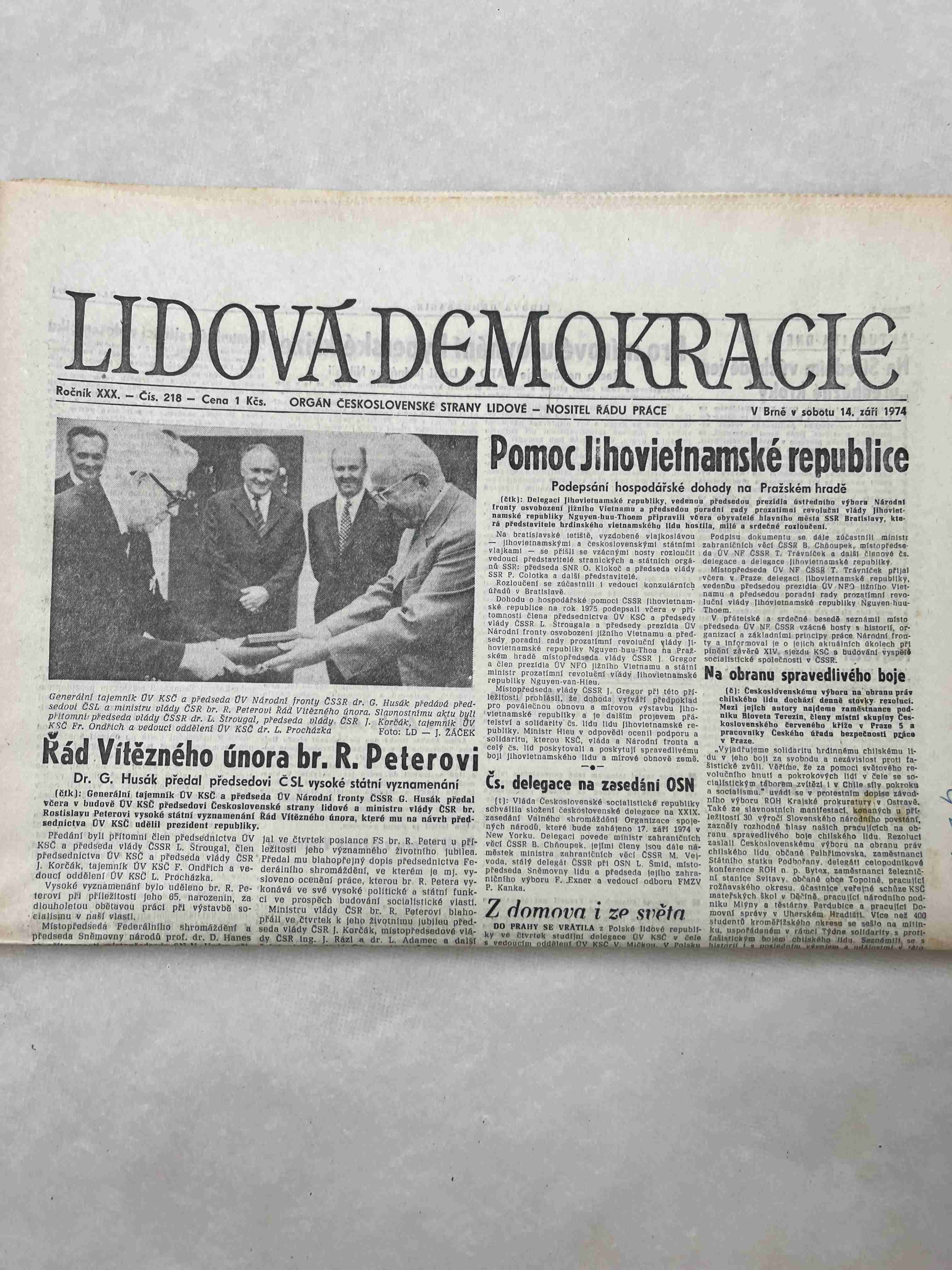 Noviny Lidová demokracie 10.9.1974