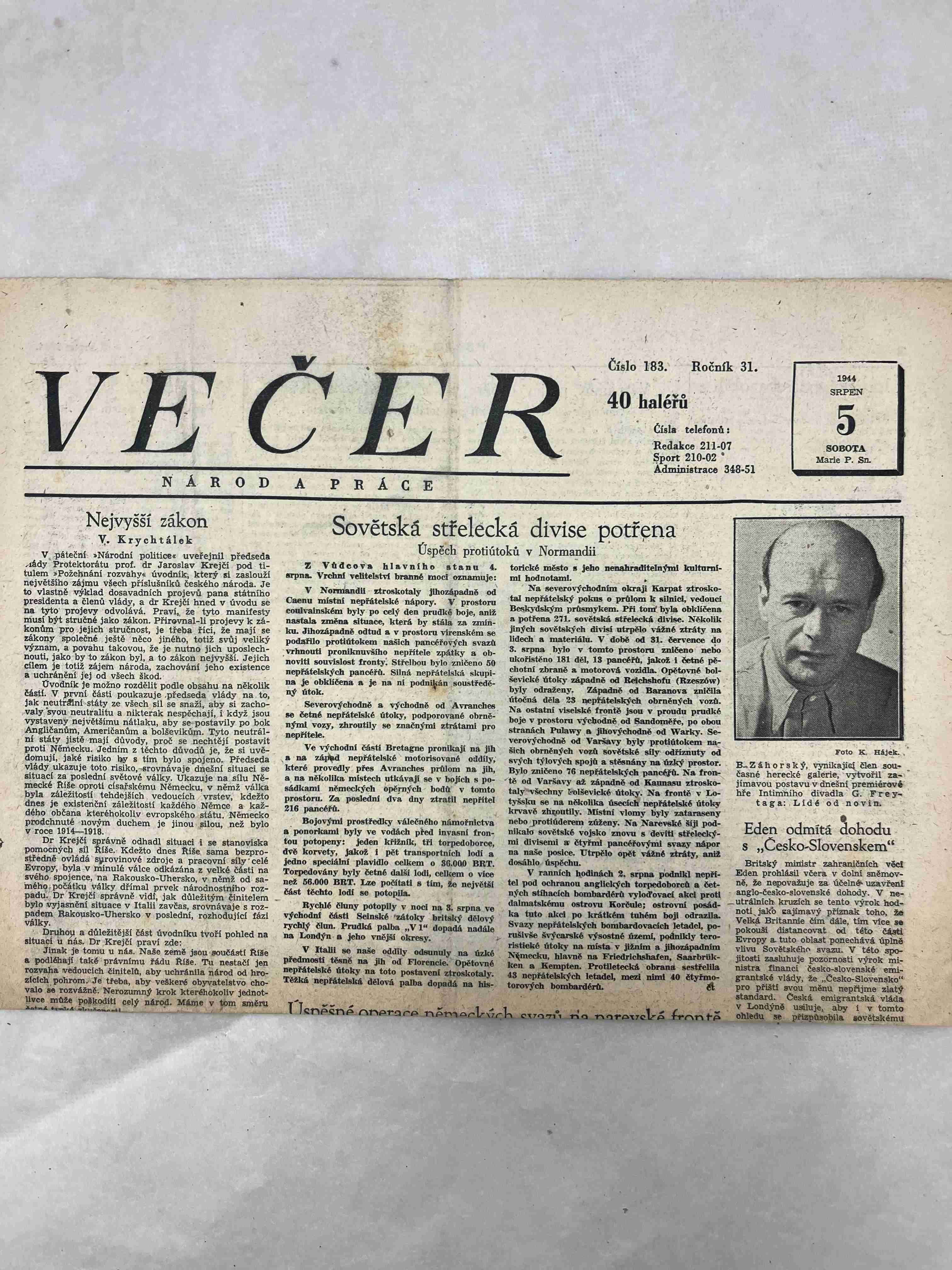 Večerní České slovo 5.8.1944