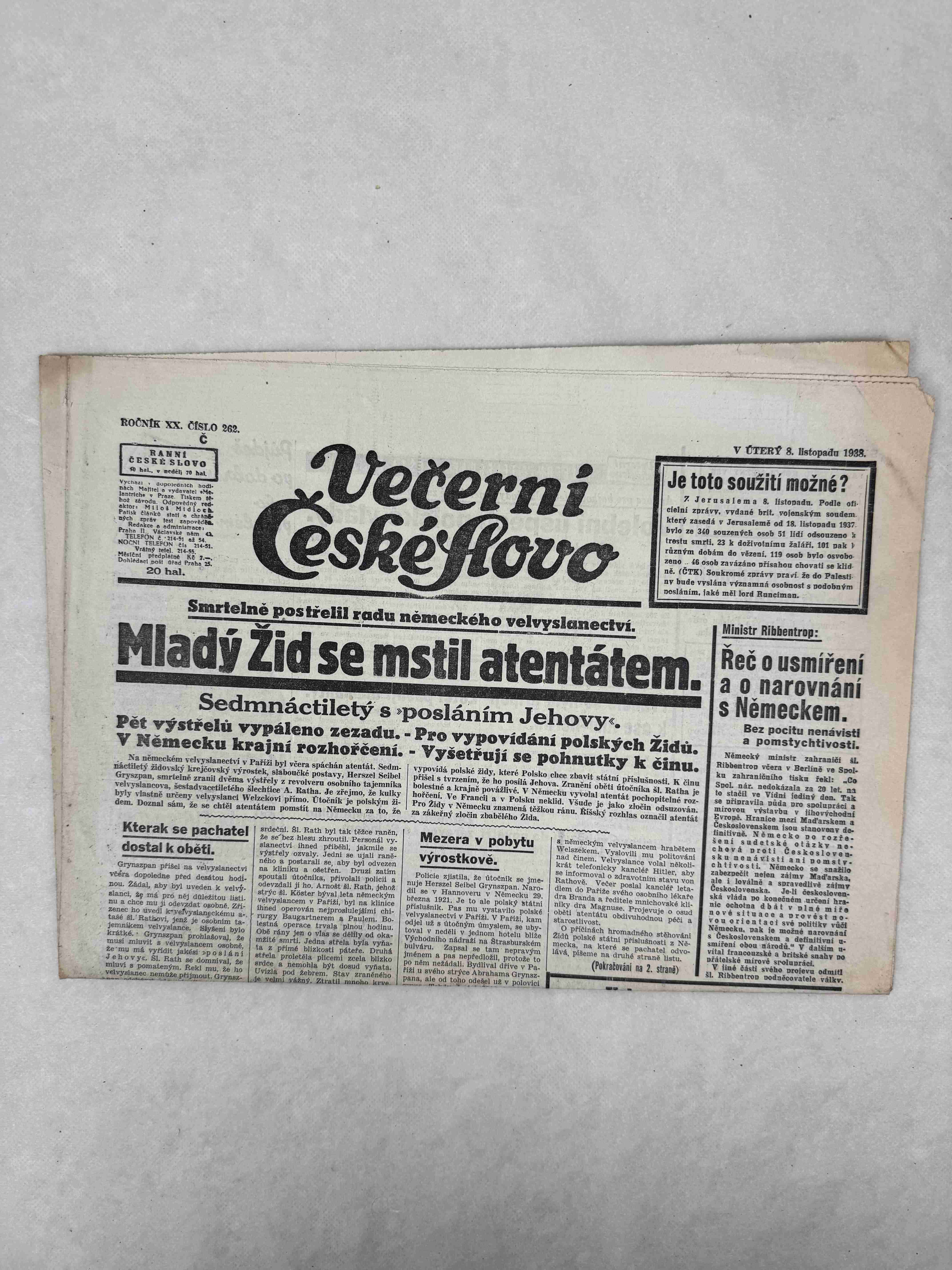 Večerní České slovo 26.11.1938