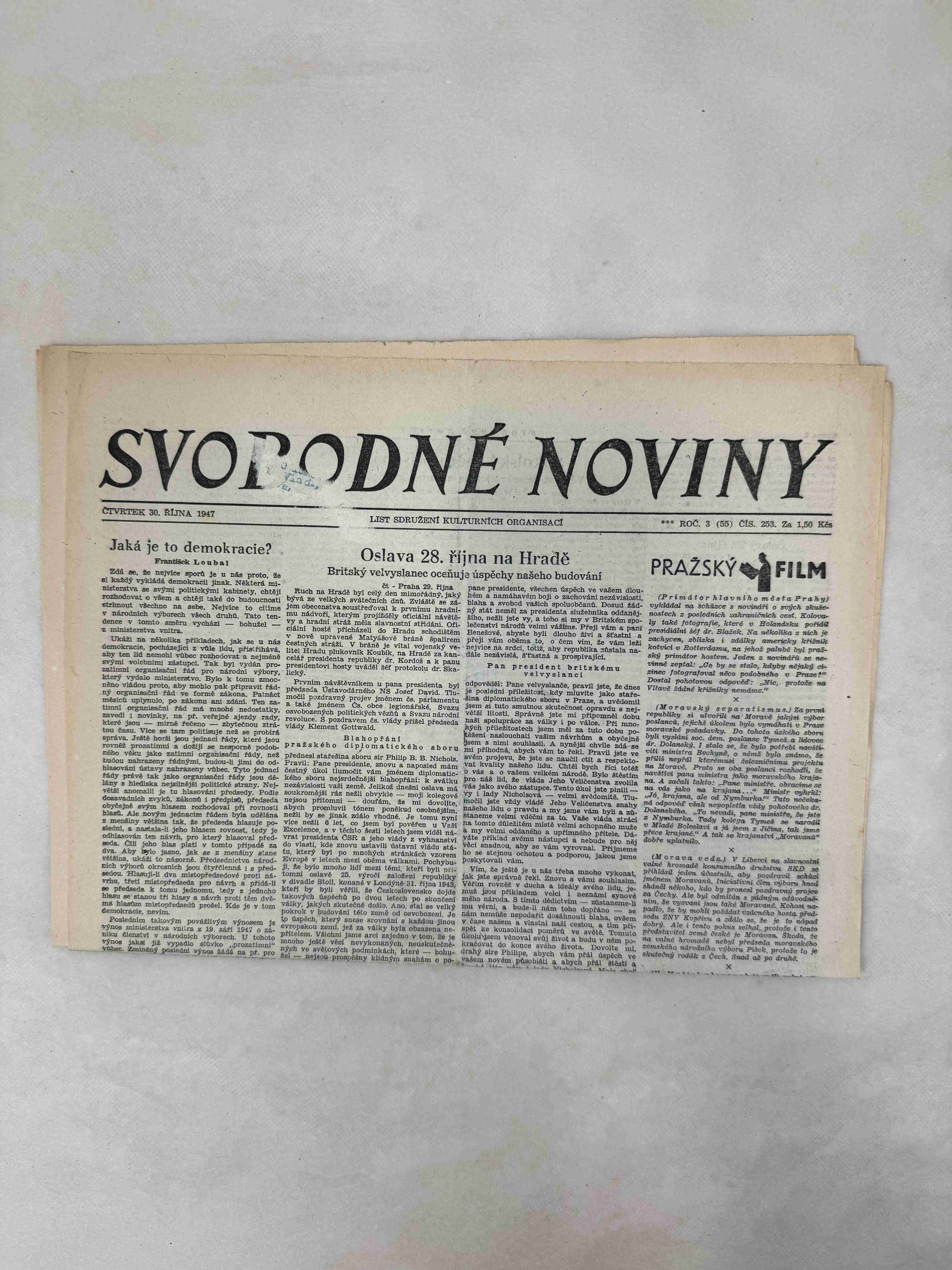 Originální dobový výtisk novin, nejedná se o reprodukci!