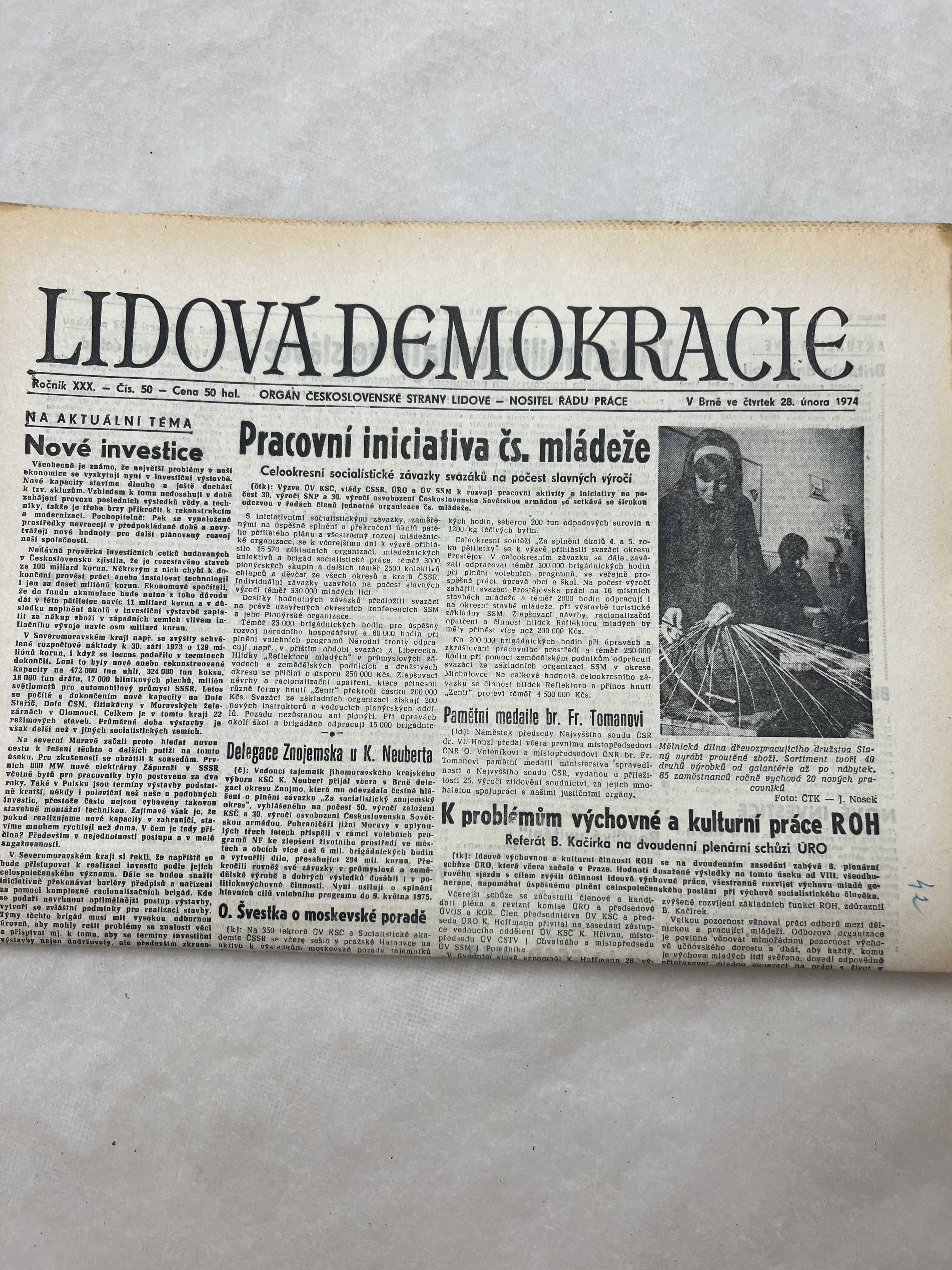 Noviny Lidová demokracie 28.2.1974