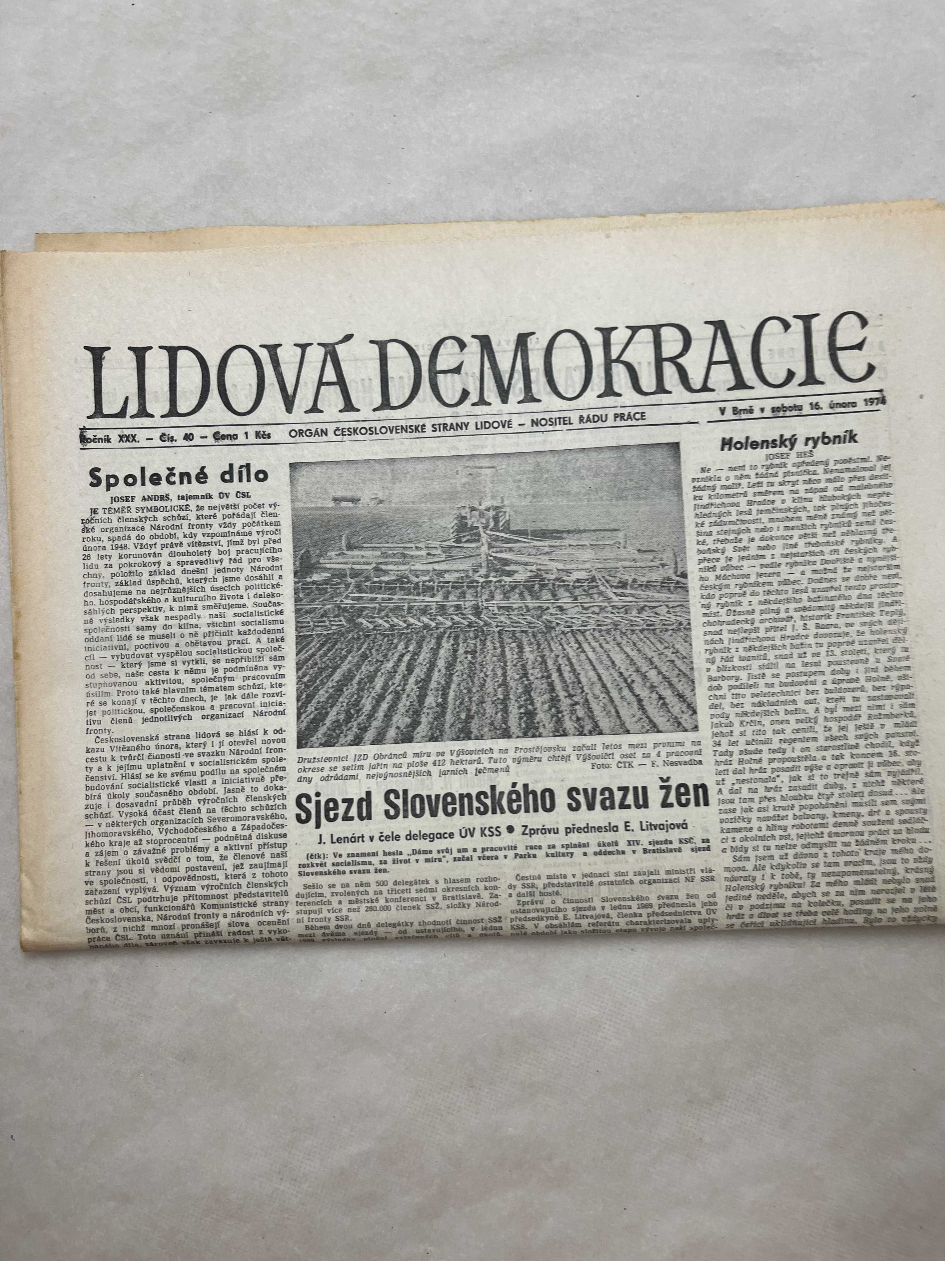 Noviny Lidová demokracie 16.2.1974