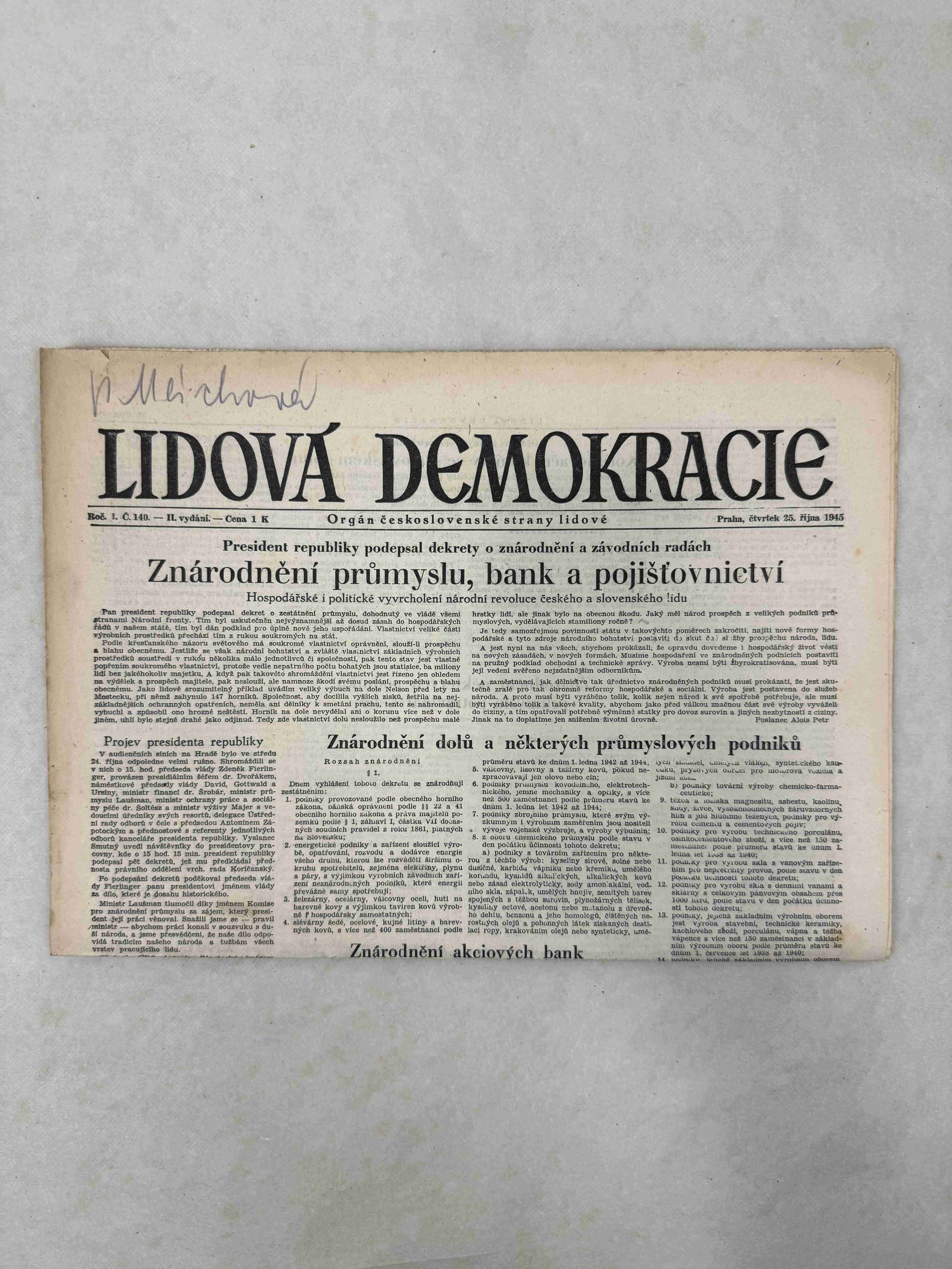 Originální dobový výtisk novin, nejedná se o reprodukci!