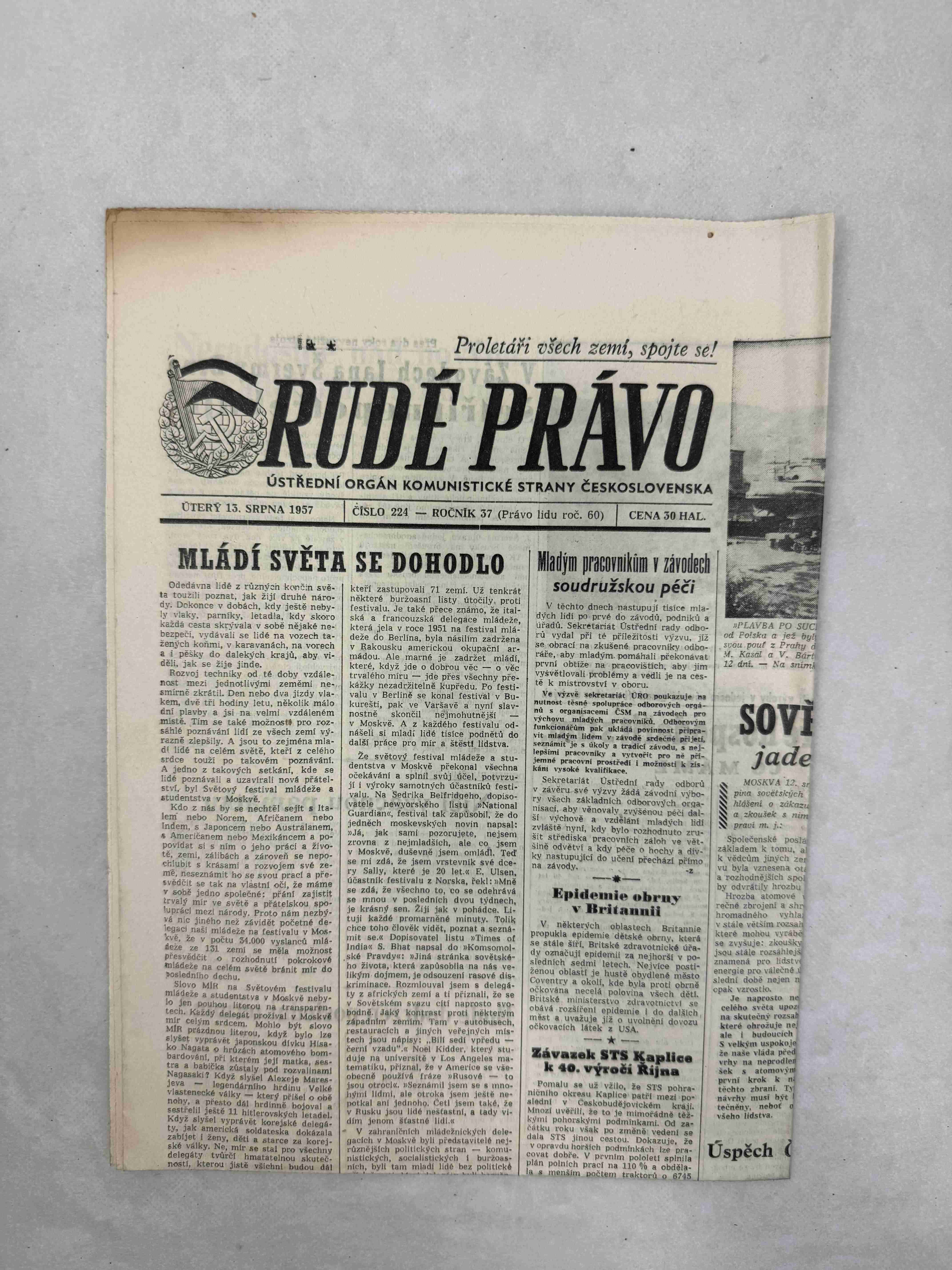 Originální dobový výtisk novin, nejedná se o reprodukci!