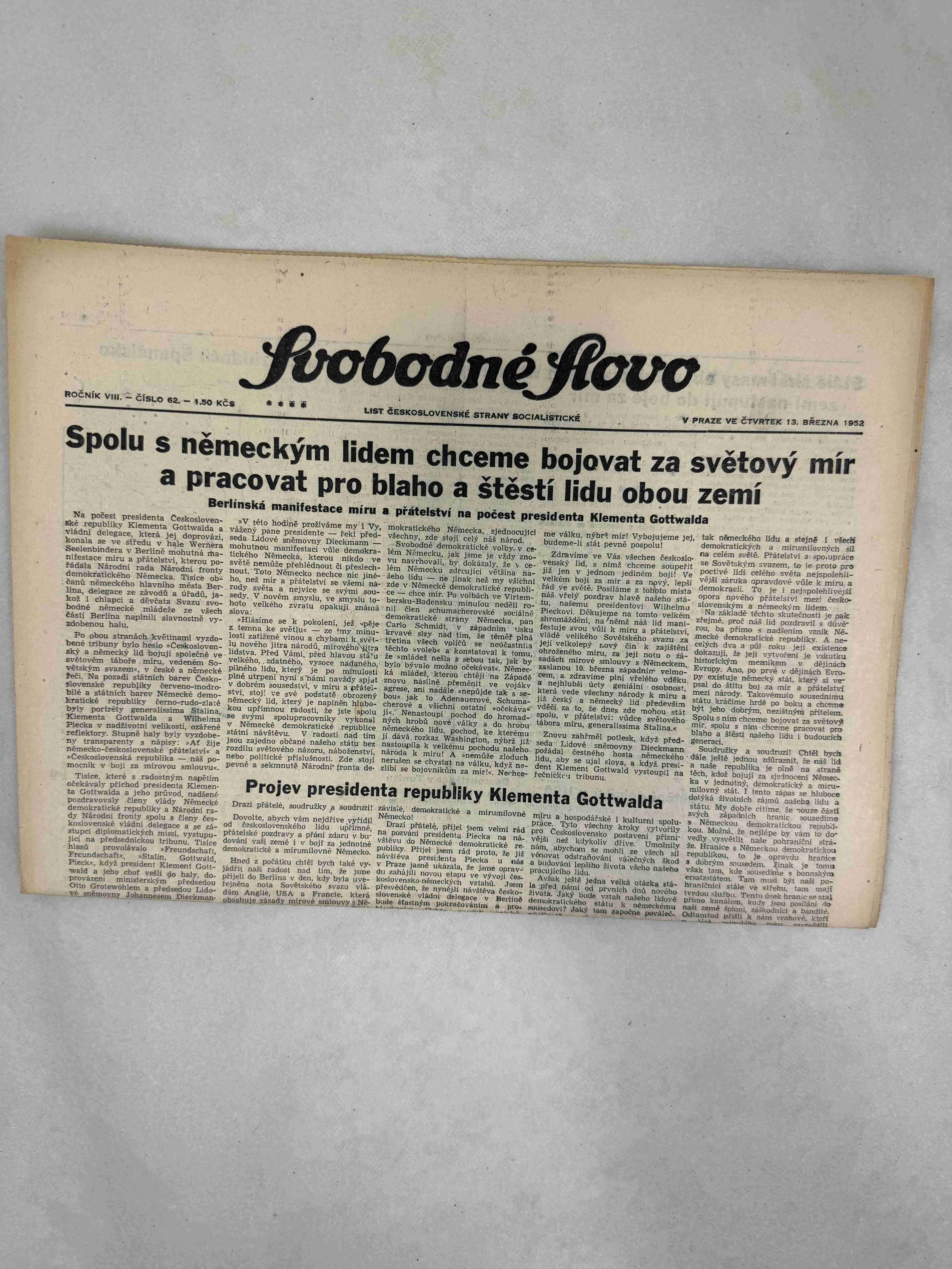Nabízené noviny jsou určeny výhradně ke sběratelským účelům a neslouží k propagaci jakéhokoliv hnutí směřujícího k potlačení práv a svobod člověka (nacistického, komunistického apod.). Prodávající se distancuje od výše uvedených hnutí a jejich myšlenek.