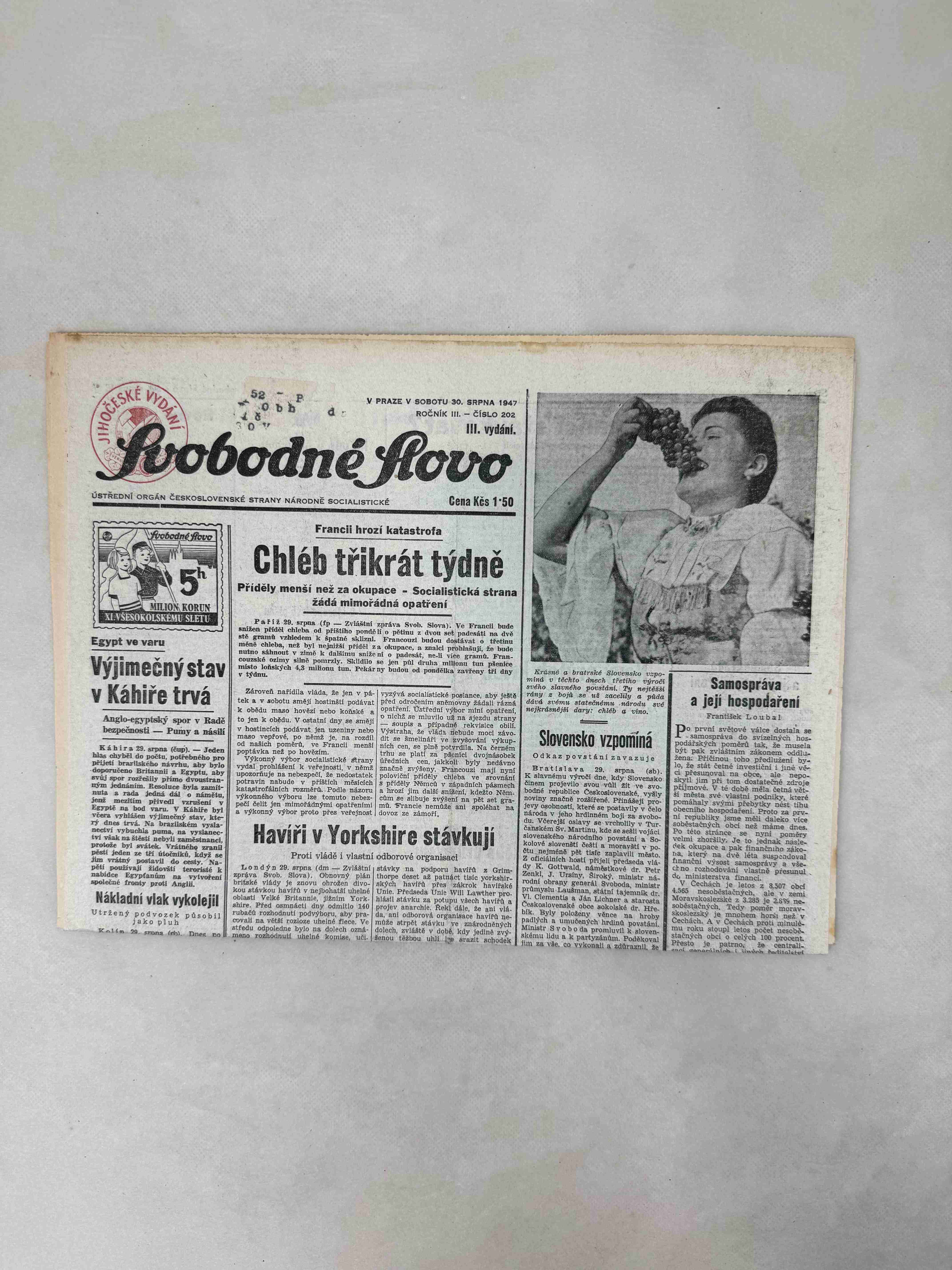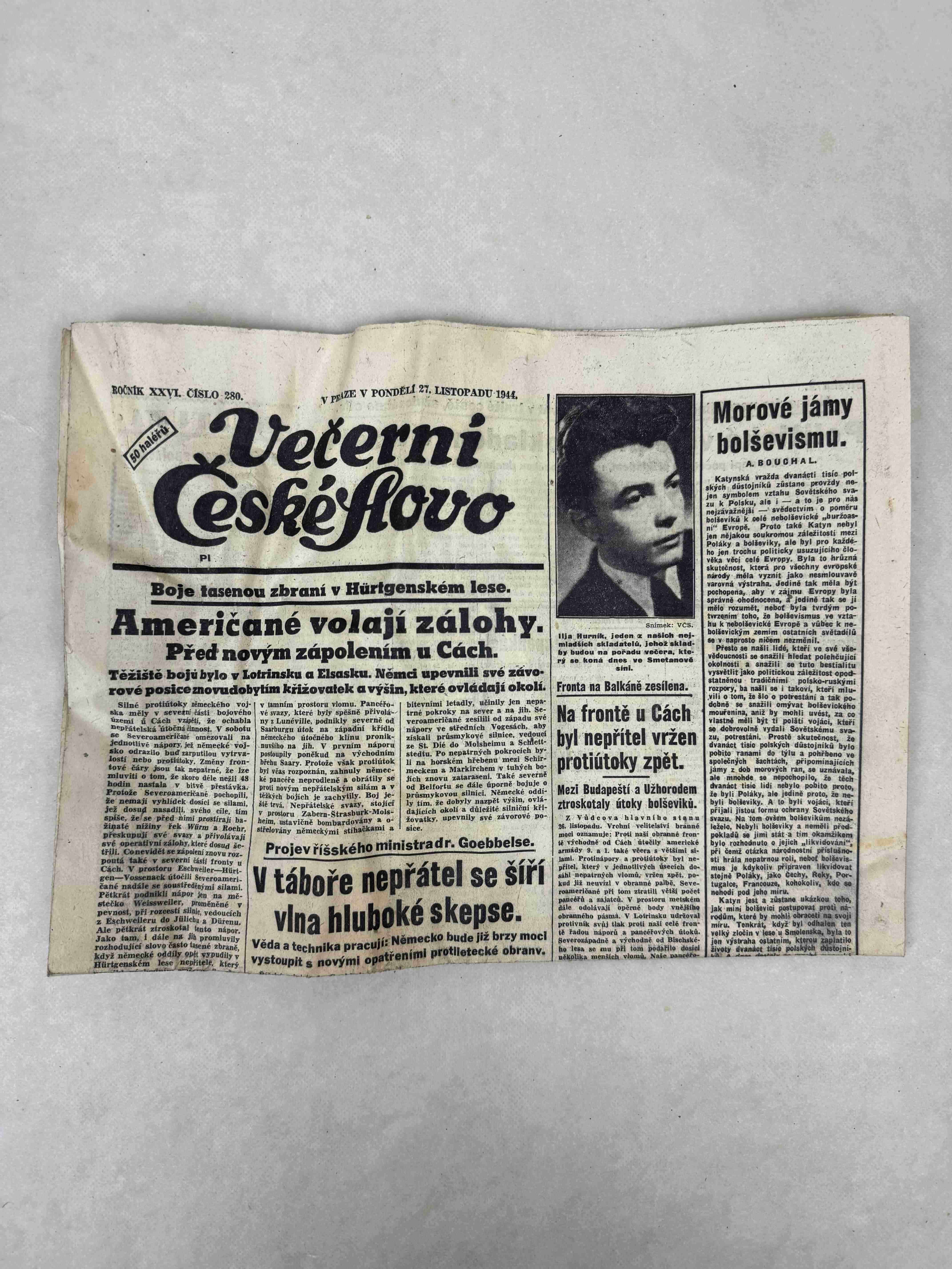 Originální dobový výtisk novin, nejedná se o reprodukci!