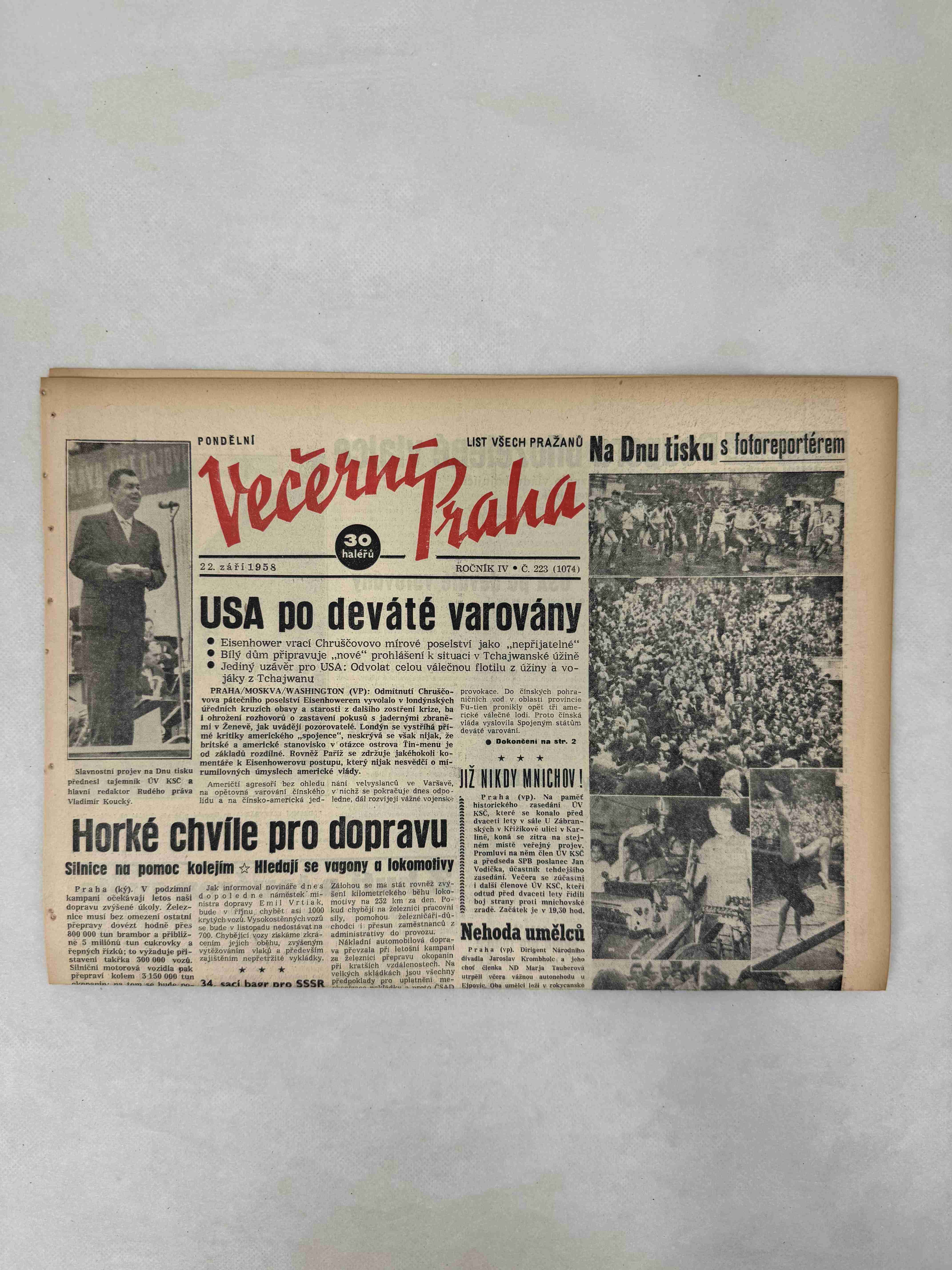 Originální dobový výtisk novin, nejedná se o reprodukci!
