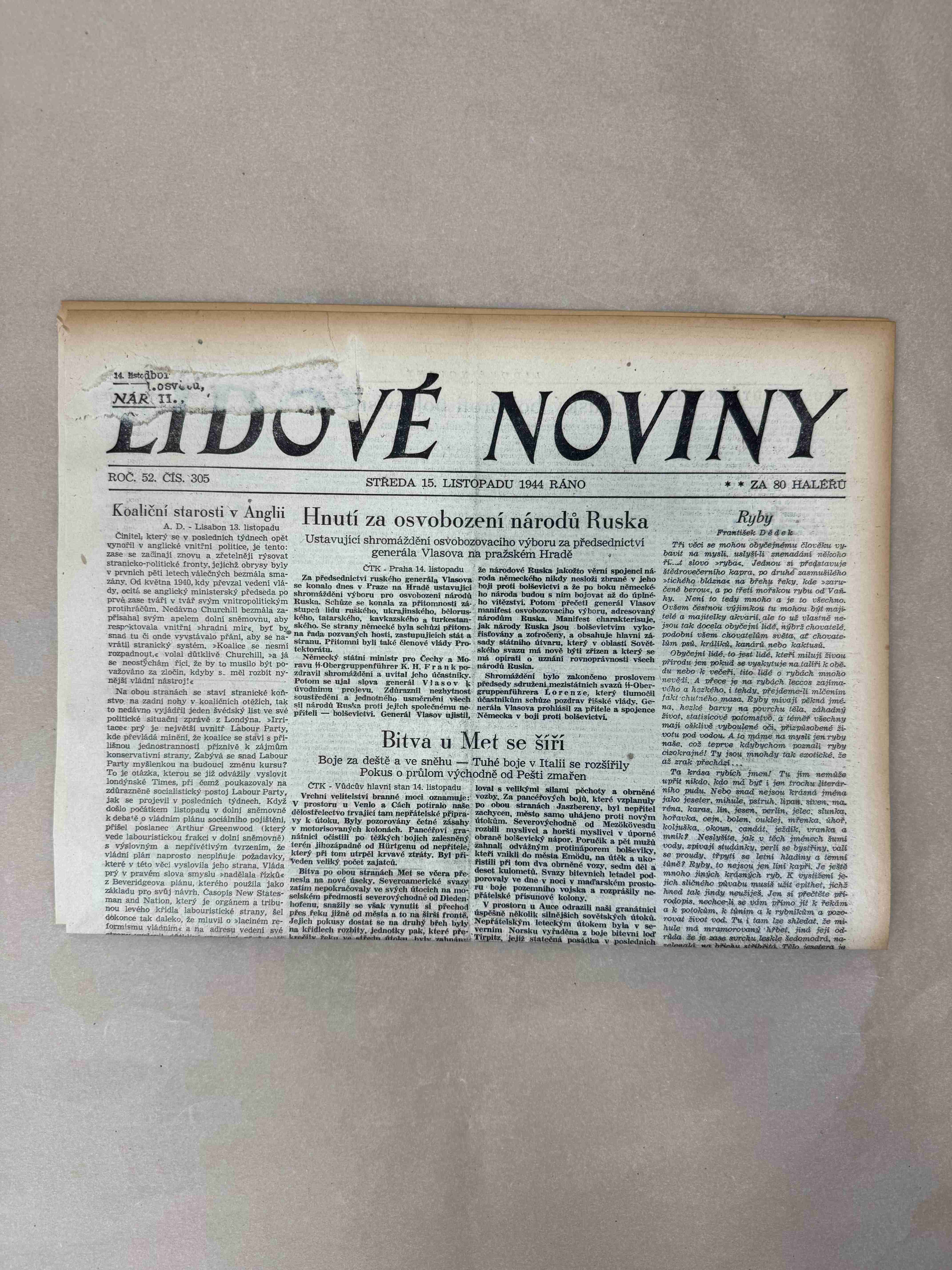 Originální dobový výtisk novin, nejedná se o reprodukci!