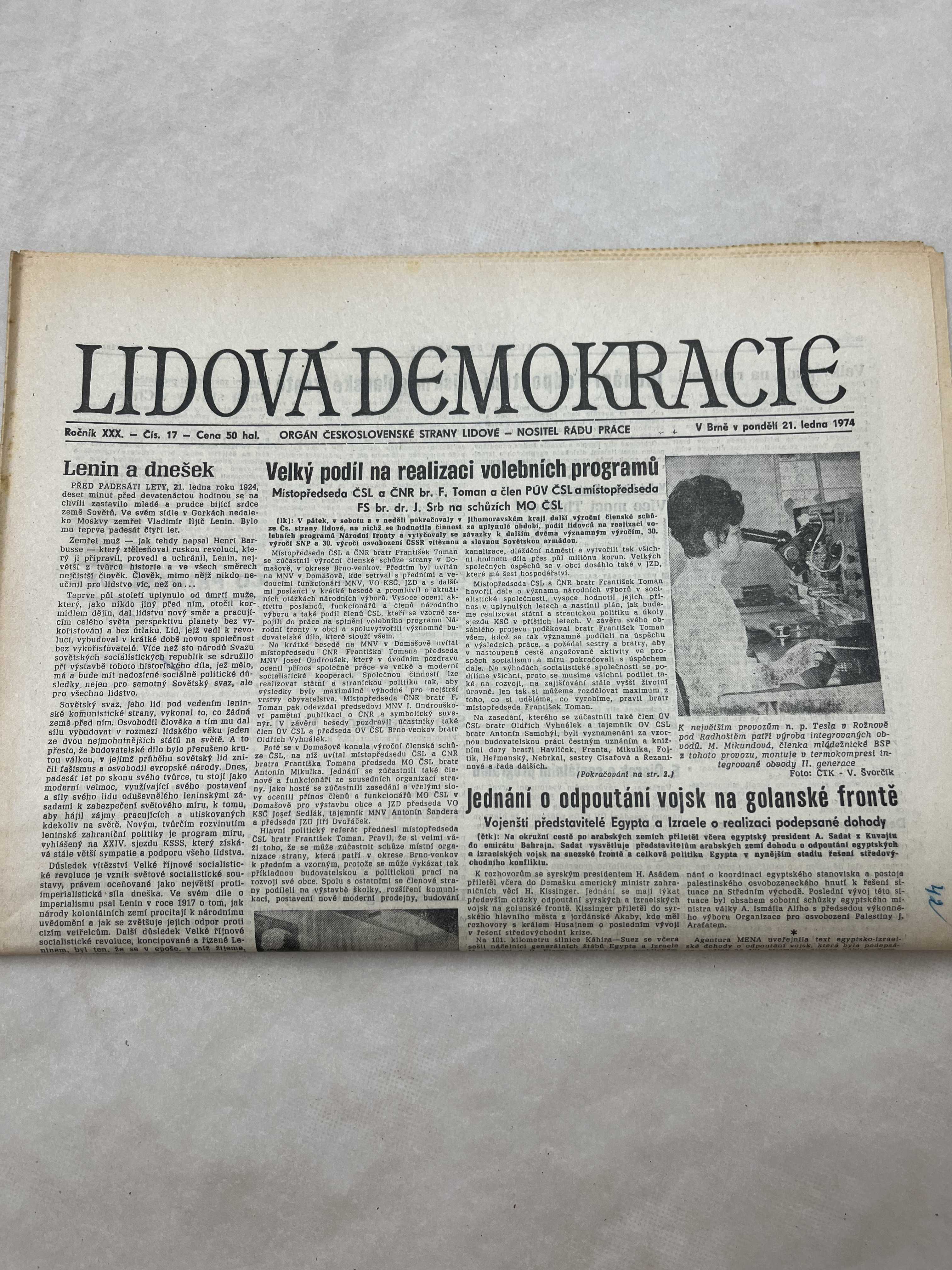 Noviny Lidová demokracie 21.1.1974