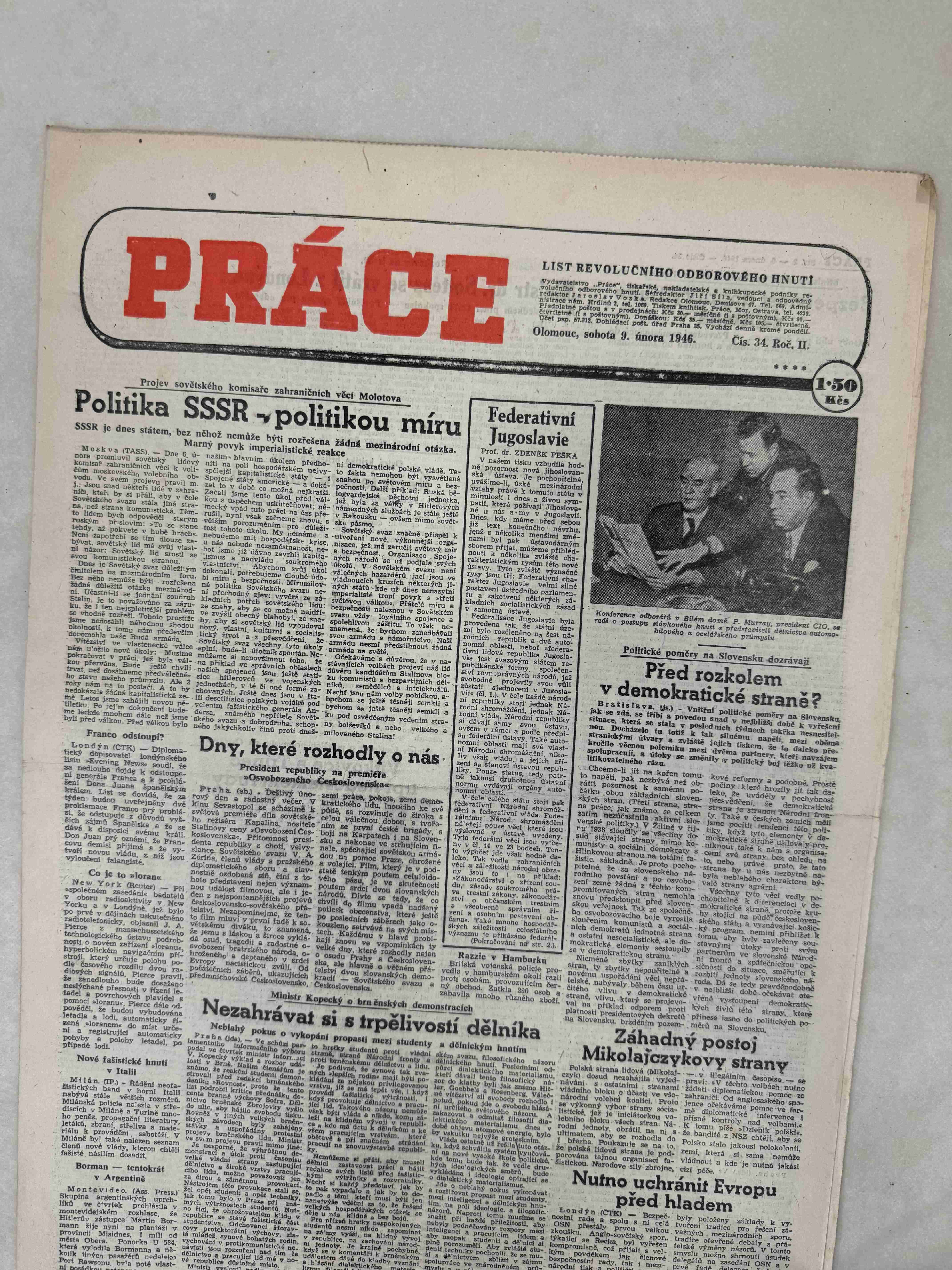Originální dobový výtisk novin, nejedná se o reprodukci!
